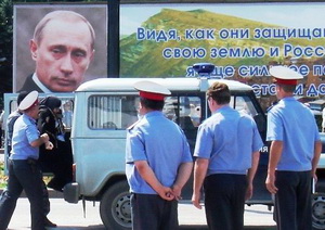 Через некоторое время стояния под палящим солнцем митингующих оттеснили к месту начала митинга, к плакату с добрым лицом В. В. Путина, чей взор был обращен на площадь и которому это вряд ли бы понравилось. Вероятно, созрел план, как решить проблему с митингующими.