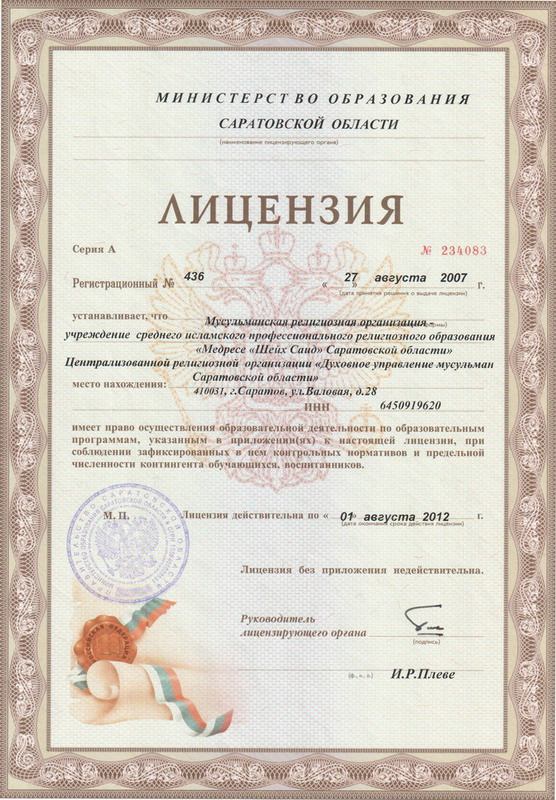 С начала 2007-2008 учебного года в городе Саратове официально начало функционировать учреждение среднего исламского профессионального образования медресе «Шейх Саид» Духовного управления мусульман Саратовской области.