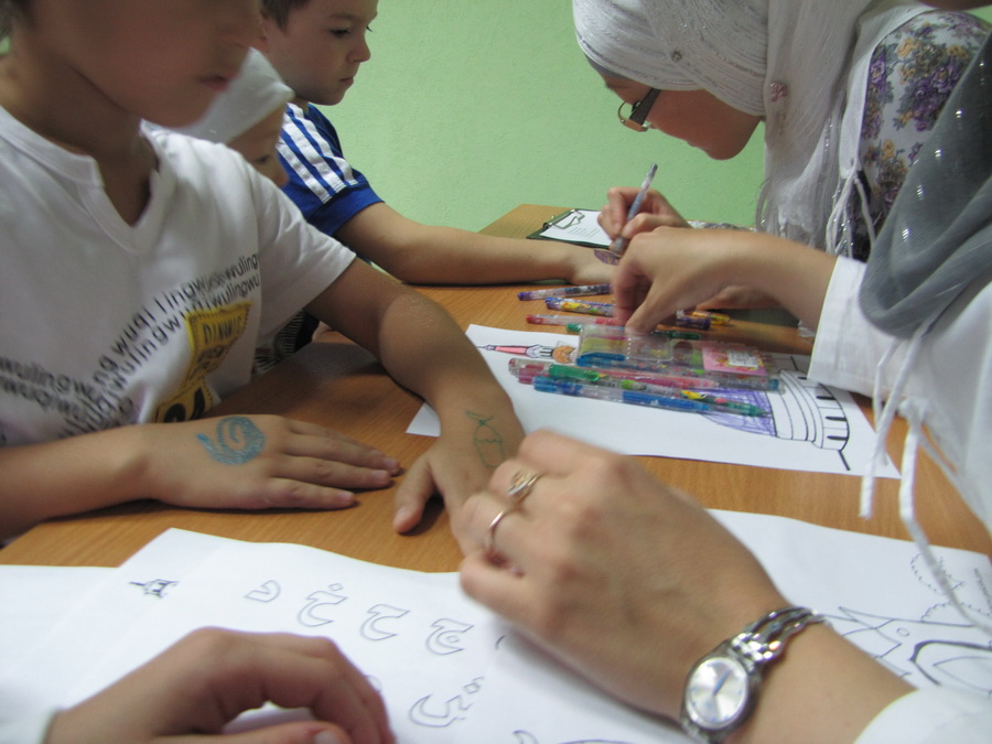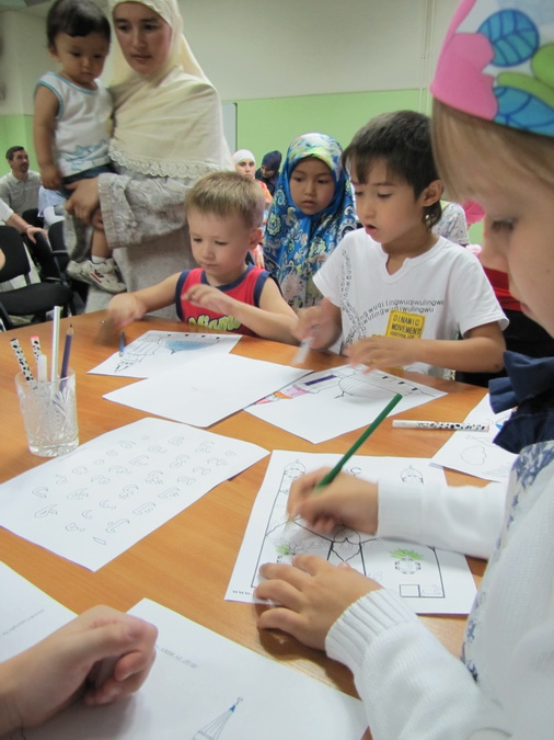 Специально для ребят организаторы также подготовили разукрашки на любой вкус – с машинами и арабскими буквами, мечетями и цветами… Маленькие мусульмане охотно взялись за карандаши, и самые лучшие работы теперь украшают холл саратовской Соборной мечети.