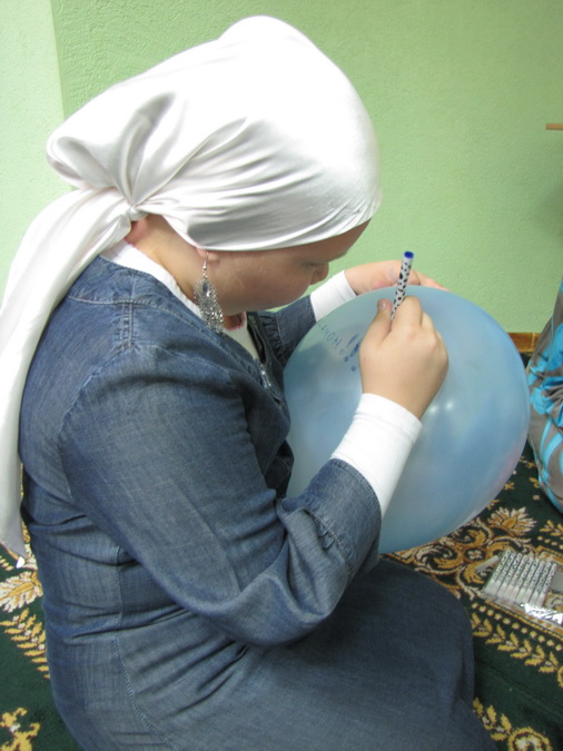 Помимо разукрашивания, в этот день на встрече с малышами работали еще две секции. Дети могли порадовать своих родителей, подарив им воздушный шарик с нарисованными собственноручно улыбками. Кроме того, активистки «Родника» по желанию ребенка наносили специальными цветными ручками для тела рисунки на ладошки. Скучать на первой рамадановской встрече ребятам не пришлось.