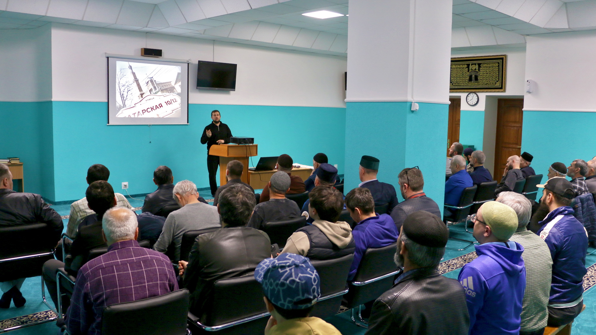 После окончания Магриб-намаза был презентован обновлённый информационный стенд. Ранее здесь располагалась фотозона с историей городской мечети. По случаю ее юбилея один из благотворителей сделал подарок — приобрел мультимедийный экран, на котором посетители Соборной мечети смогут просматривать расширенную галерею исторических фотографий, знакомиться с актуальными событиями общины и узнавать больше о жизни мечети.