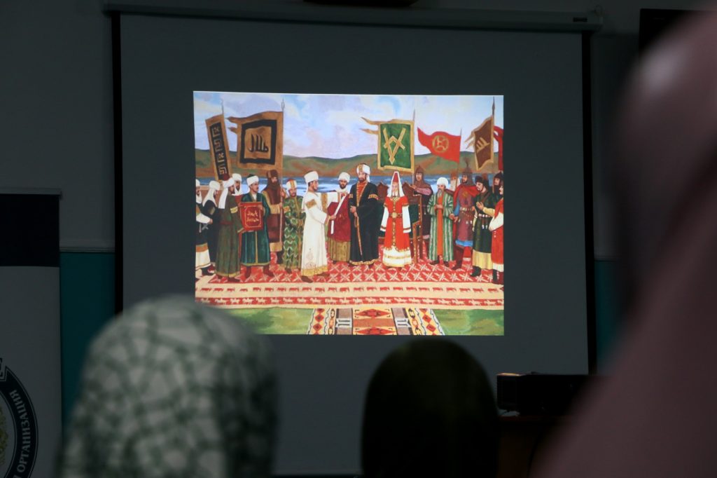В начале мероприятия его участники узнали много интересных фактов об истории Ислама в России. Руководитель «Возрождения» Рустам-хаджи Абдульманов выступил с презентацией, в которой были отмечены важные вехи — 642 год (сподвижники пророка Мухаммада (мир ему) дошли до города Дербента), 922 год (официальное принятие Ислама народами Волжской Булгарии), 1313 год (официальное провозглашение Ислама религией Золотой Орды в городе Мохши (современный Наровчат) и др. Также Рустам-хаджи рассказал про Укек (золотоордынский город, располагавшийся на территории современного Саратова) и основание Саратова.