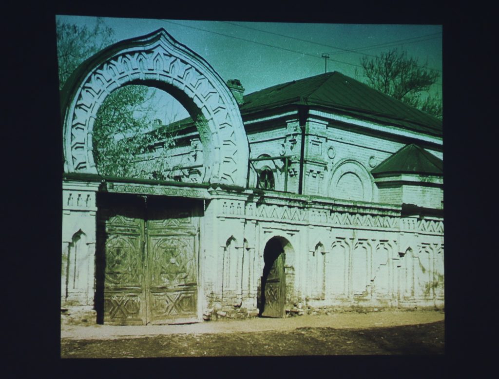Подробно руководитель «Возрождения» остановился на истории мусульманской общины Саратова – напомнил, как жили последователи Ислама здесь на протяжении веков, показал архивные фотографии городских мечетей. Так, в 1836 году в Саратове была построена мечеть на улице Татарской. В 1894 году после реконструкции она стала каменной, способной вместить больше молящихся. Рустам-хаджи рассказал, что было с саратовскими мусульманскими храмами в годы советской власти. Собравшиеся также увидели уникальные фотографии конца 80-х и начала 90-х годов XX столетия – периода возрождения Ислама в Саратове, возвращение здания исторической мечети, начало ее реконструкции и др.