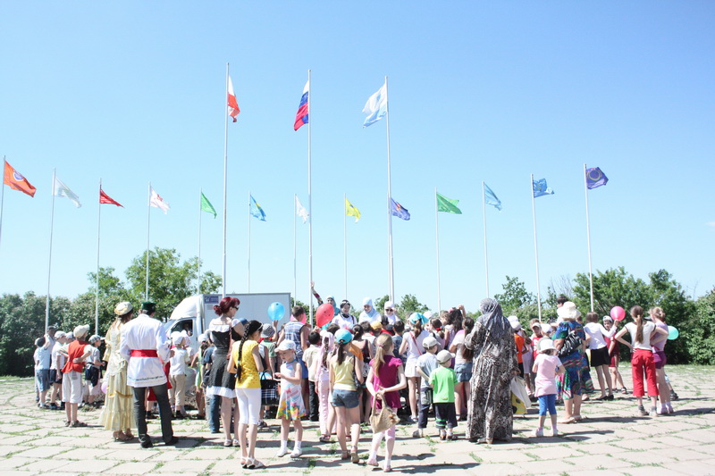 Обойдя все национальные подворья, дети и родители собрались на главной площади Нацдеревни, где взявшись за руки, дружно скандировали «Дружба!». И каждый присутствующий получил флажок, на котором было изображены множество национальных флагов с надписями: «Дети — это счастье, Дети — это радость, Дети — это в жизни свежий ветерок. Их не заработать, это не награда, их по благодати взрослым дарит Бог».