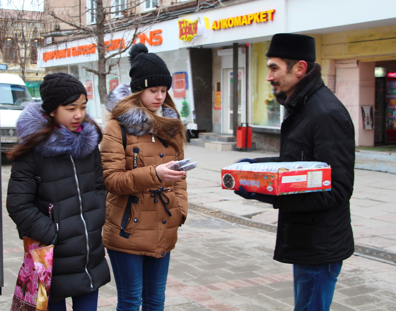 15 декабря в центре г.Саратова состоялась акция по раздаче фиников и сладостей «Он – милость для миров».