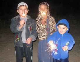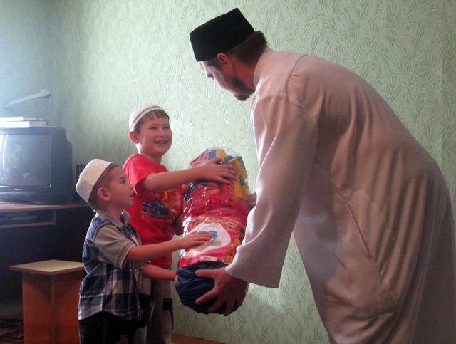 Когда пришел последний ифтар, мы, поужинав, собрали молодых мусульман с семьями. Выехав на пустырь, устроили детям зрелище с бенгальскими огнями и салютом. После, вернувшись домой, взяли крупу и отправились к нуждающимся мусульманам и вместе раздали фитр-садака.