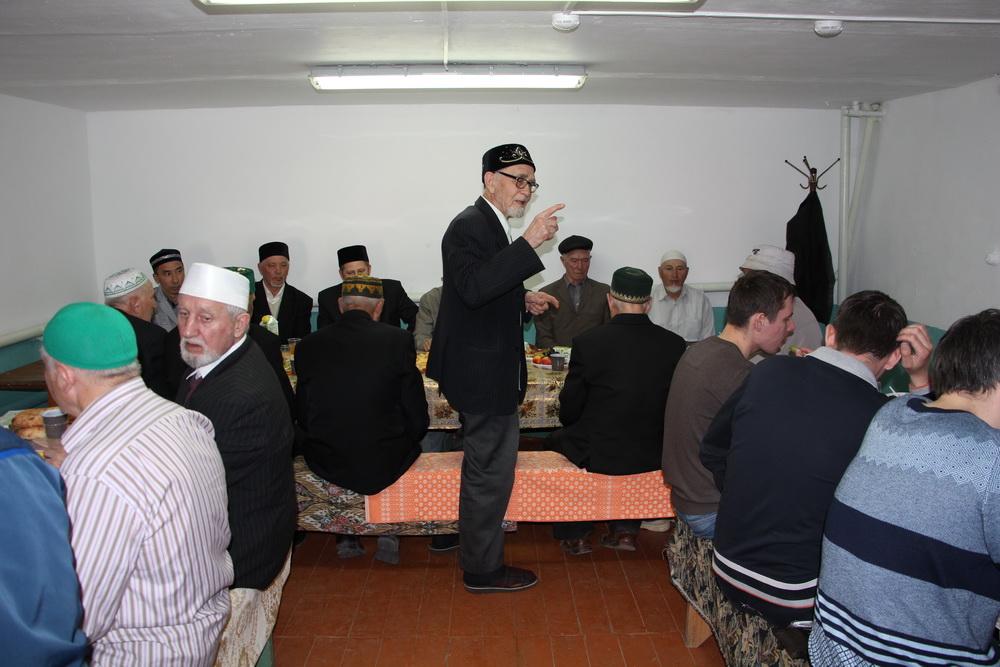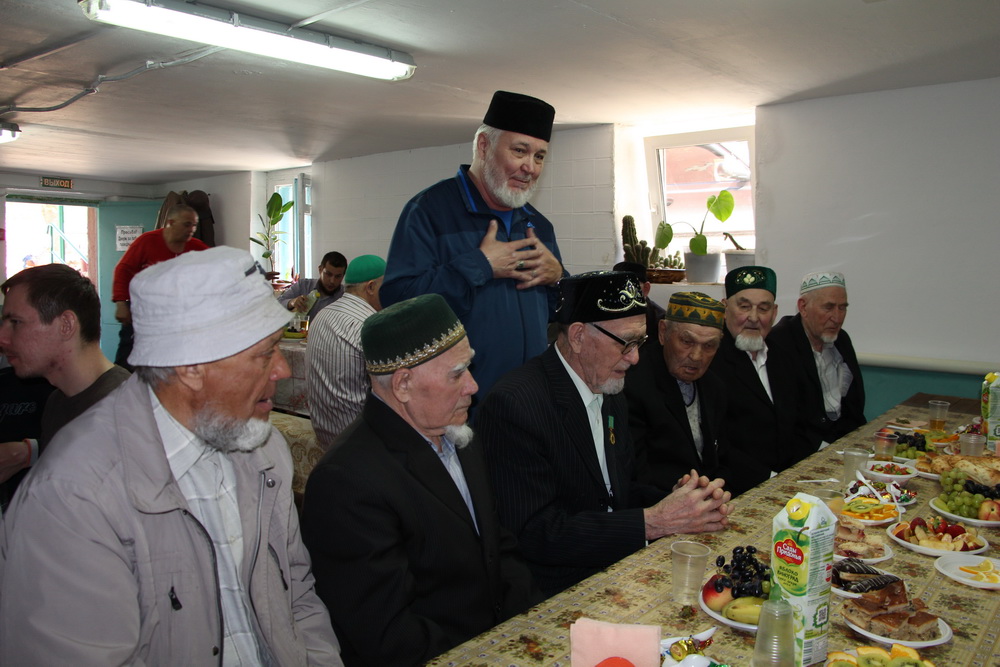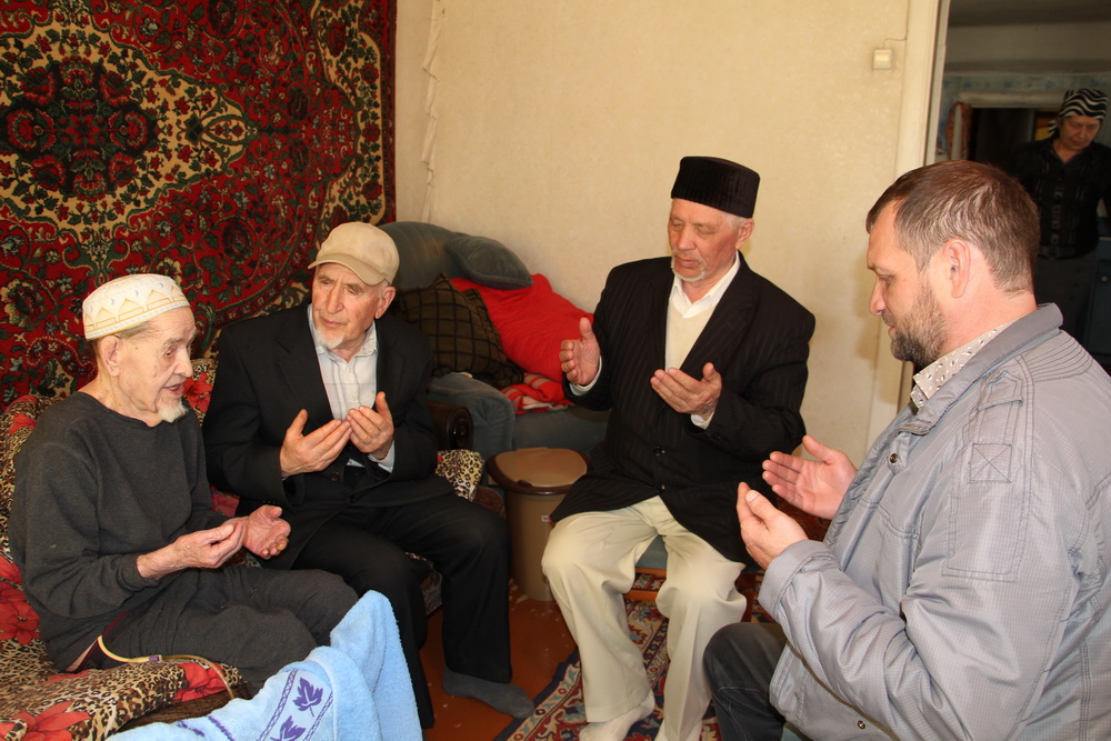 По окончании встречи поколений ее участники навестили старейшину общину Аюпа Бахтеева. 99-летний фронтовик в силу болезни уже давно не покидает свой дом, и визит единоверцев очень обрадовал аксакала. Аюп Вафинович поделился с гостями своими далекими воспоминаниями, а также помолился за навестивших его людей.