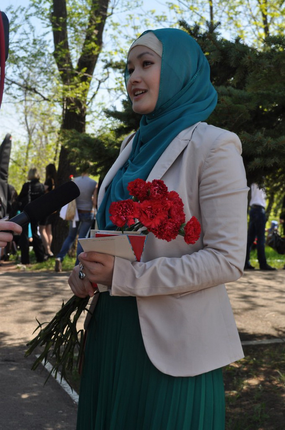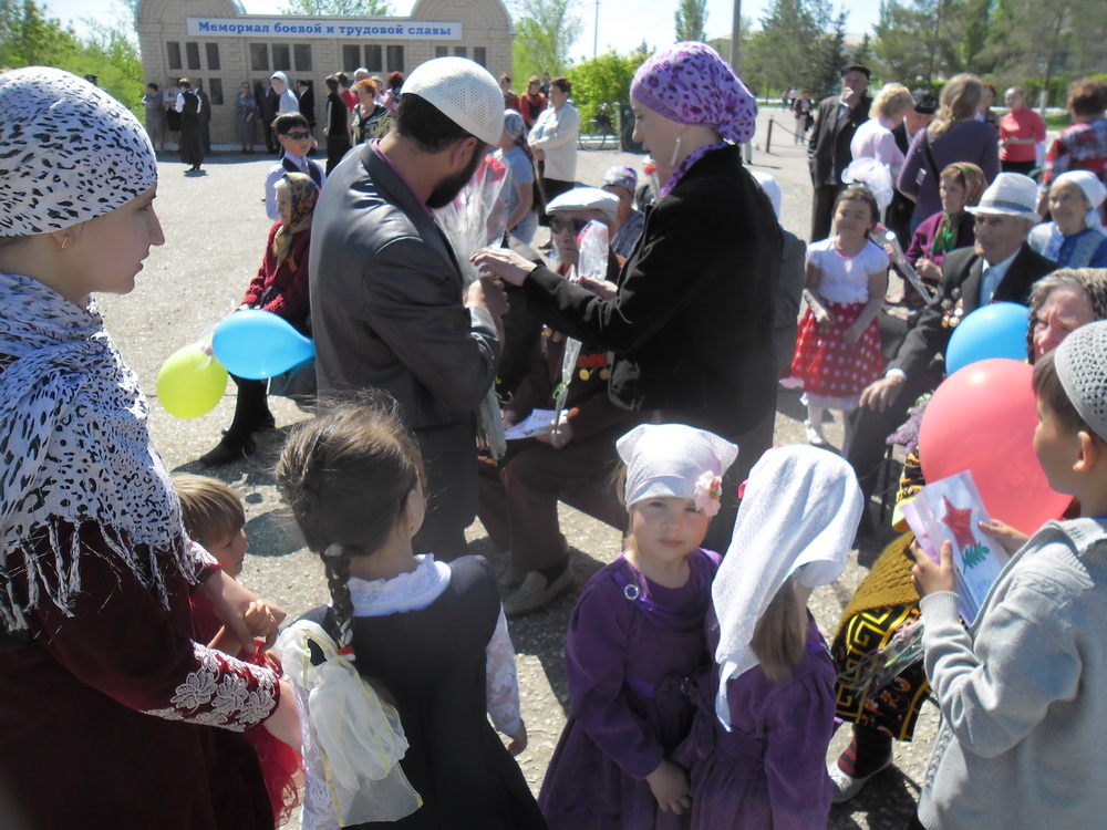 «Стоило нам подойти к площади, как тут же наши маленькие мусульмане оказались в центре внимания, — рассказала активистка «Аиши»Танзиля Сарипова- привлекая детей к поздравлениям, мы преследовали цель — воспитать у подрастающего поколения чувство любви к Родине и уважения к участникам  исторического события».