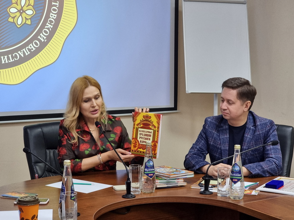 Заседание круглого стола посетила российский писатель, публицист, популяризатор науки и культуры, автор серии книг «Удивительная Русь» Жанна Андриевская.