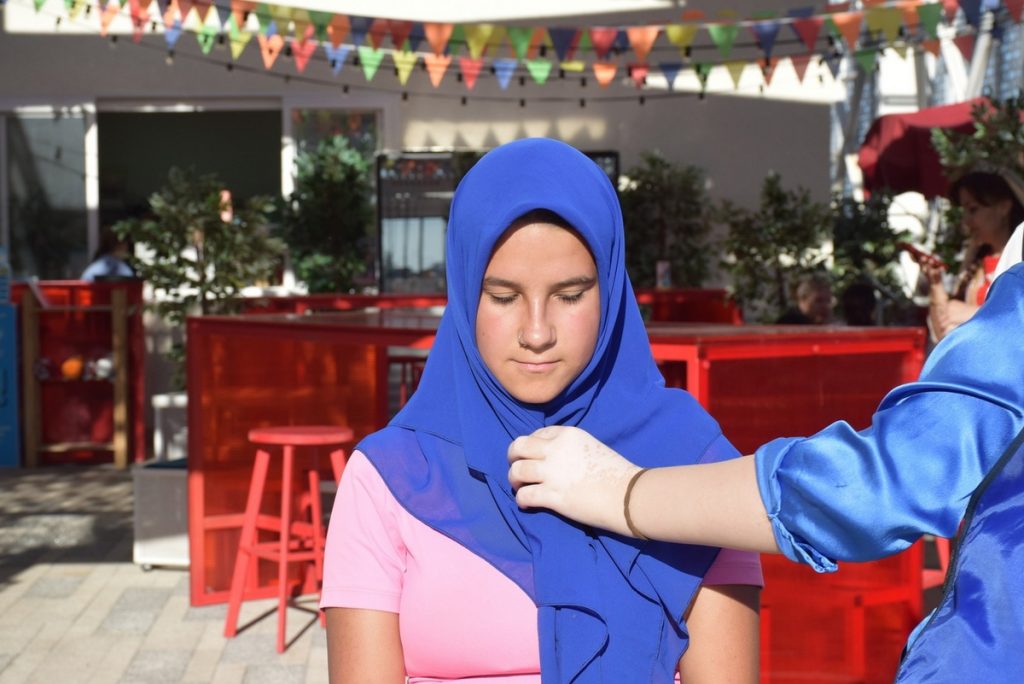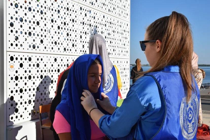 В ходе фестиваля активистки культурно-просветительской организации «Возрождение» провели мастер-класс по повязыванию платка. Он вызвал большой интерес у девушек и женщин.