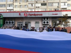В центре города на пересечении улиц Волжская и Октябрьская был развернут флаг России длиной более 60 метров. Участниками акции стали студенты, представители национальных объединений и общественники.