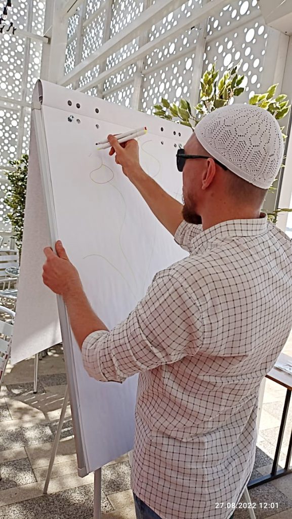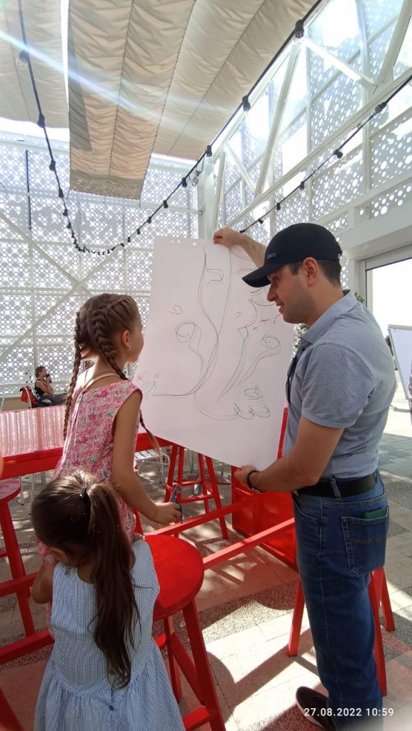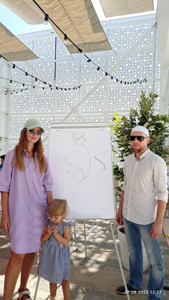 Как рассказал руководитель научного направления «Возрождения» Алексей Муратов, на площадке по каллиграфии всем желающим предлагалось изобразить имена в виде рисунка, представляющего собой арабографичный орнамент. После этого участники мастер-класса забирали с собой на память полотно с росписью.