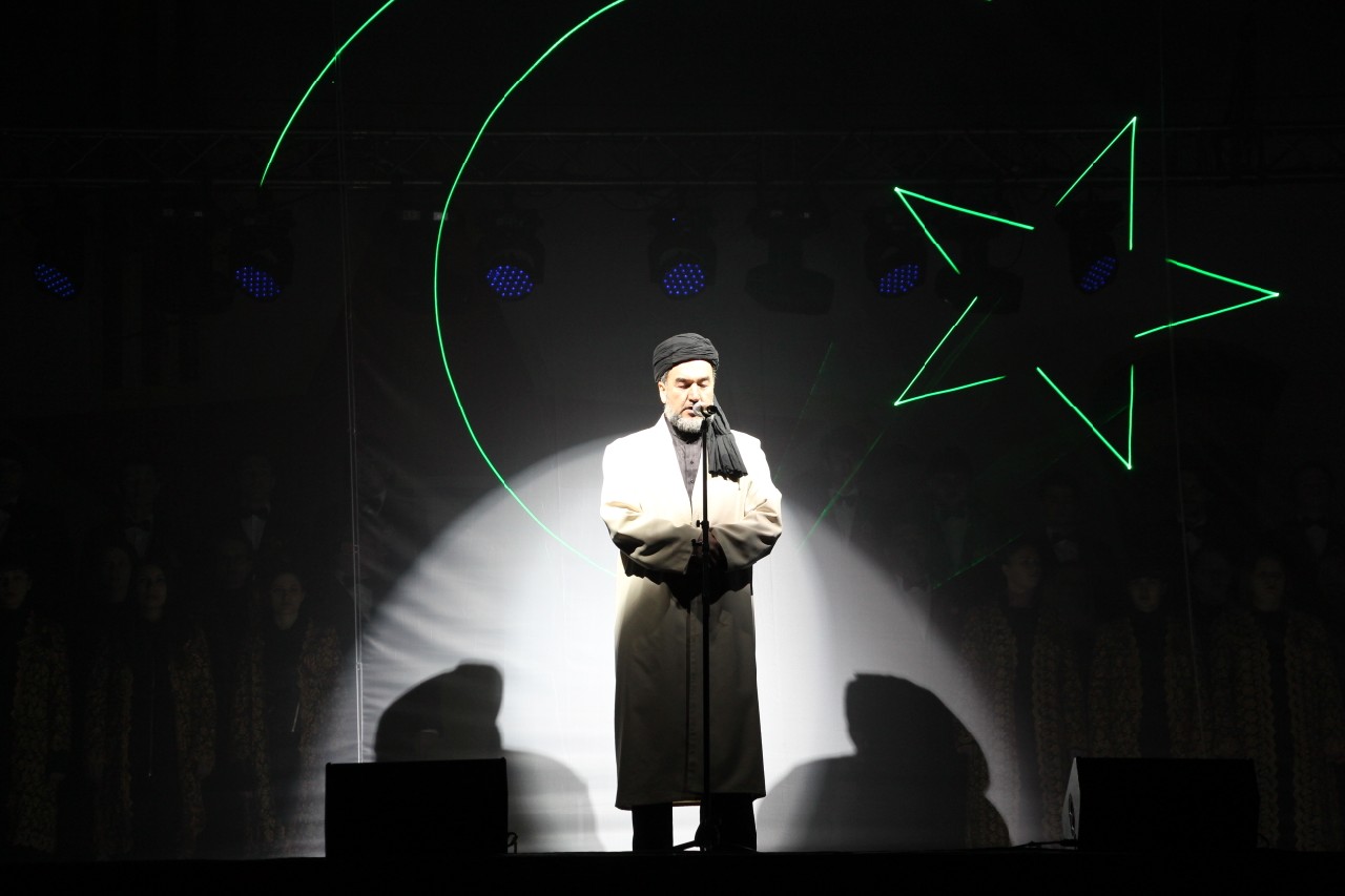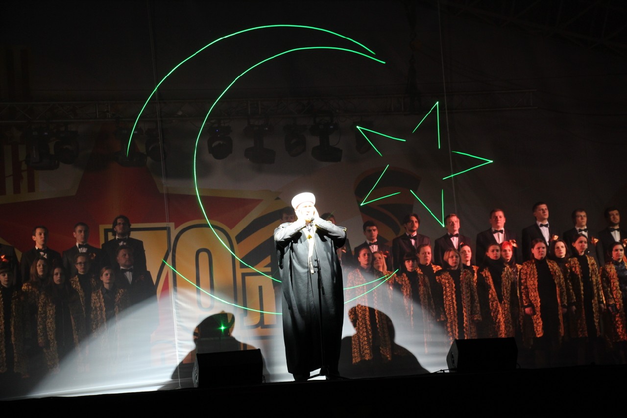 Перед тем, как имам Соборной мечети г.Саратова Шавкат-хазрат Хакимов прочитал аяты Священного Корана, а имам-мухтасиб Фаниль-хазрат Бибарсов исполнил азан (призыв на молитву), ведущий сообщил, что в начале войны духовными лидерами советских мусульман была издана фетва о джихаде для тех, кто встал на защиту Родины от немецких захватчиков.