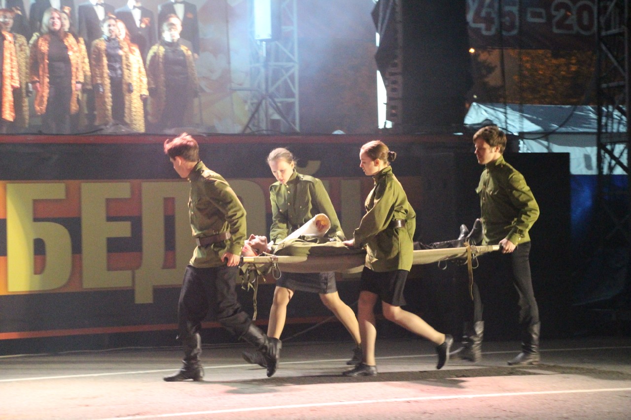 Памятная акция продолжилась творческими выступлениями и театрализованными представлениями, с помощью лазерных проекций и световых эффектов удалось донести до зрителей основные вехи Великой Отечественной войны и рассказать о роли Саратовской области и ее жителей в приближении Дня Победы.