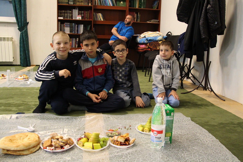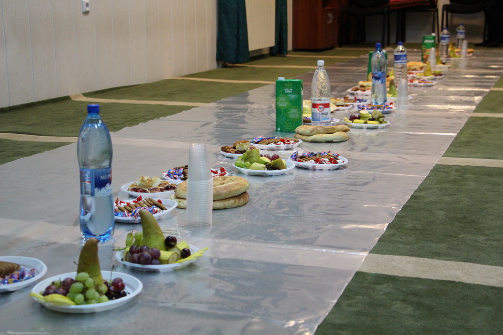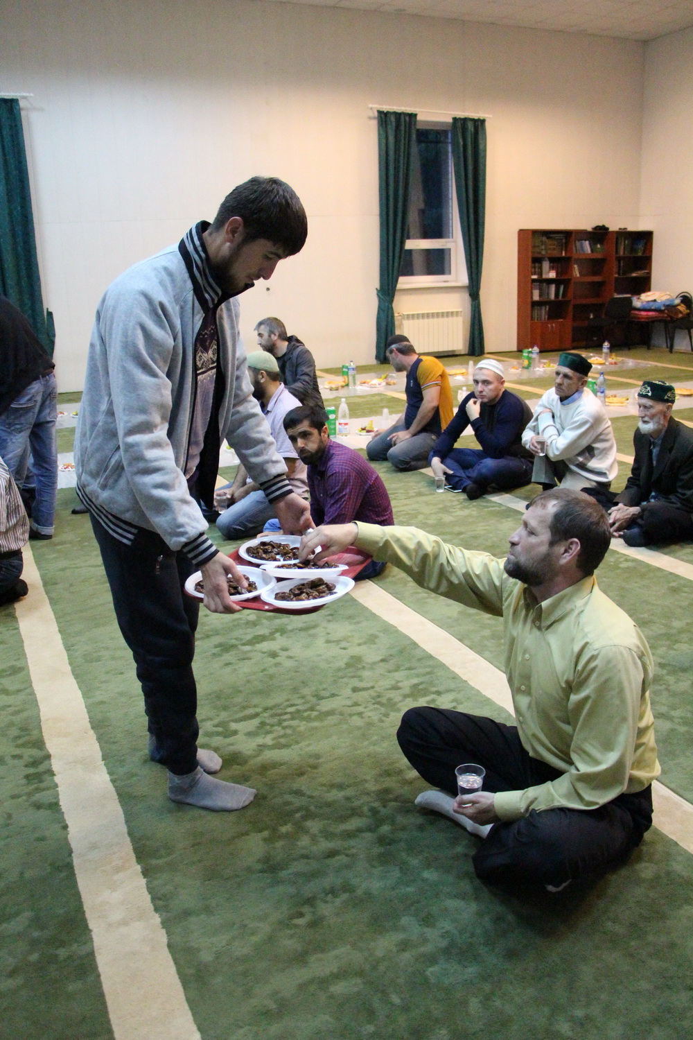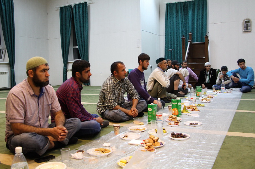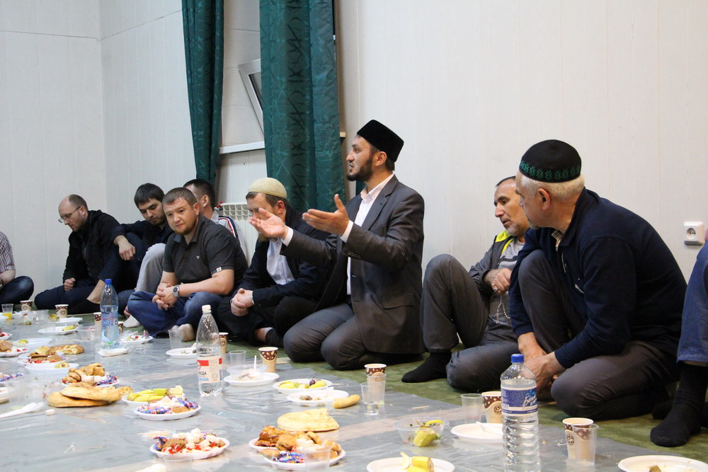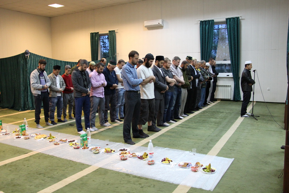 Муэдзин оповестил о наступлении вечерней молитвы, все собравшиеся вкусили финики и воду, после чего совершили Магриб-намаз и приступили к праздничной трапезе. В теплой душевной атмосфере верующие отведали ароматный плов и подвели итог ушедшего дня Рамадана.