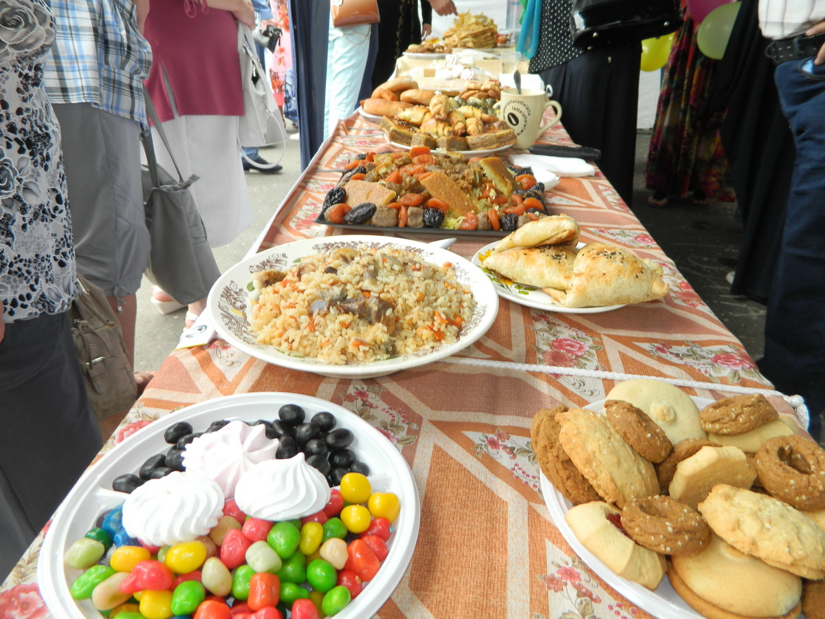В рамках мероприятия, посвященного Дню России, состоялась презентация блюд народов, проживающих в нашей многонациональной стране. В праздничный день балашовские мусульмане и активистки женской организации «Родничок» угощали всех желающих кулинарными изысками азербайджанской, таджикской, чеченской, дагестанской и татарской кухни.