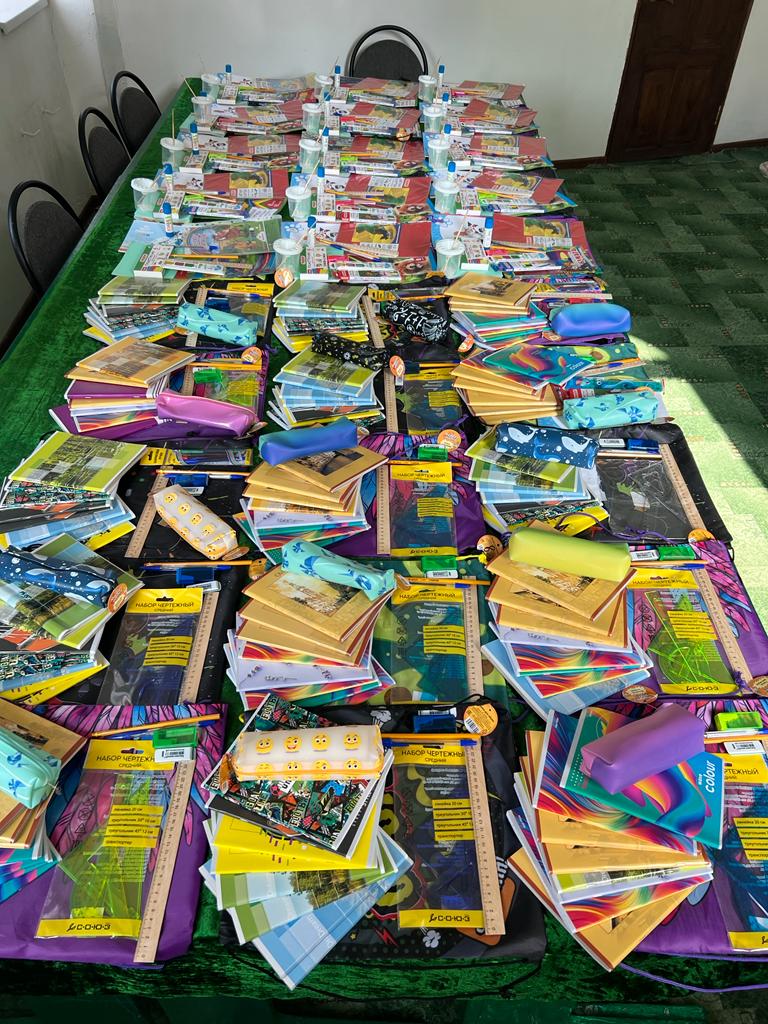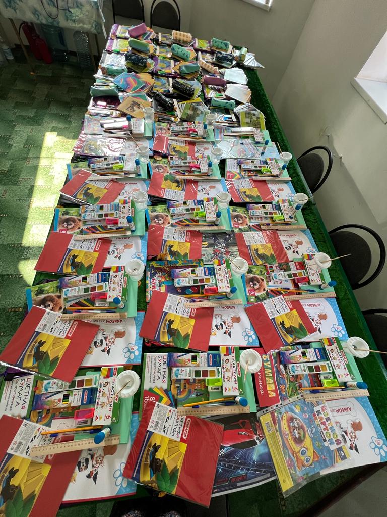 В этом году такую помощь получили более 30 мальчиков и девочек из 19 семей. Для них были закуплены и сформированы комплекты с канцтоварами для учебы в школе. В наборы вошли тетради, альбомы, ручки, карандаши, линейки, пеналы, цветная бумага, картон и другое.