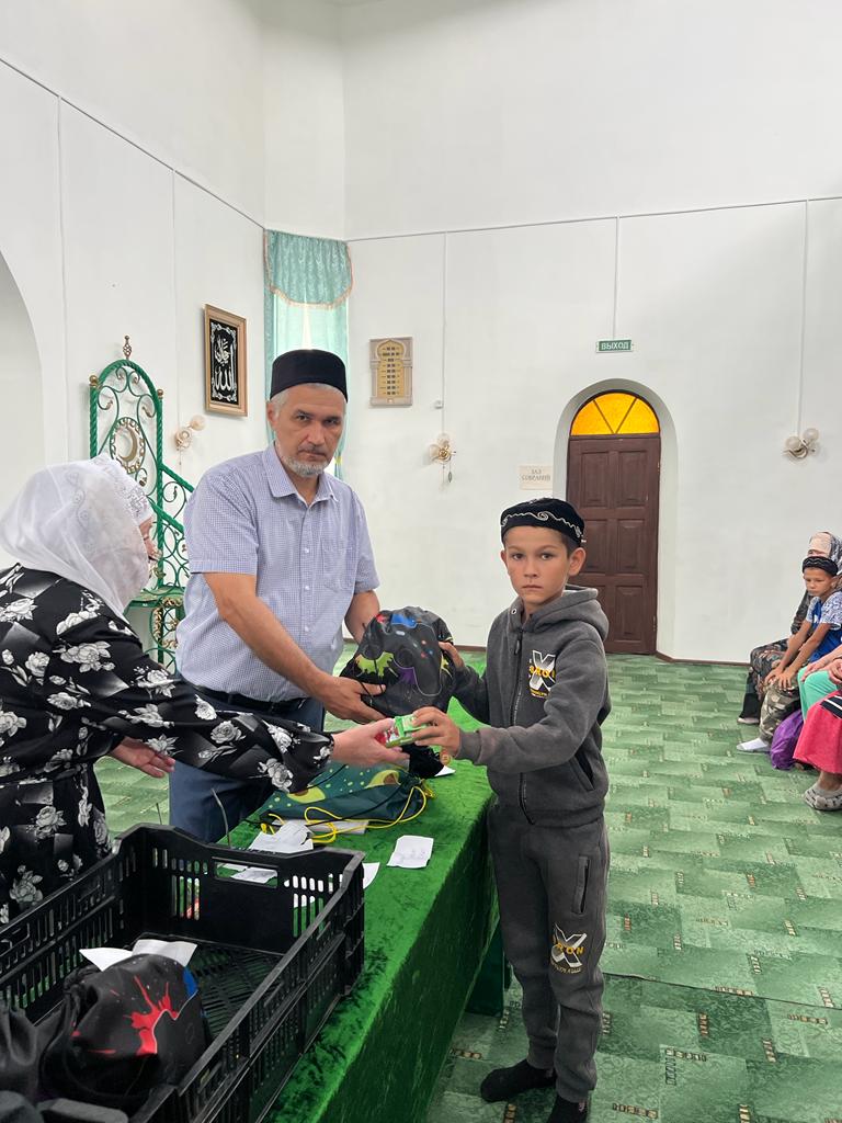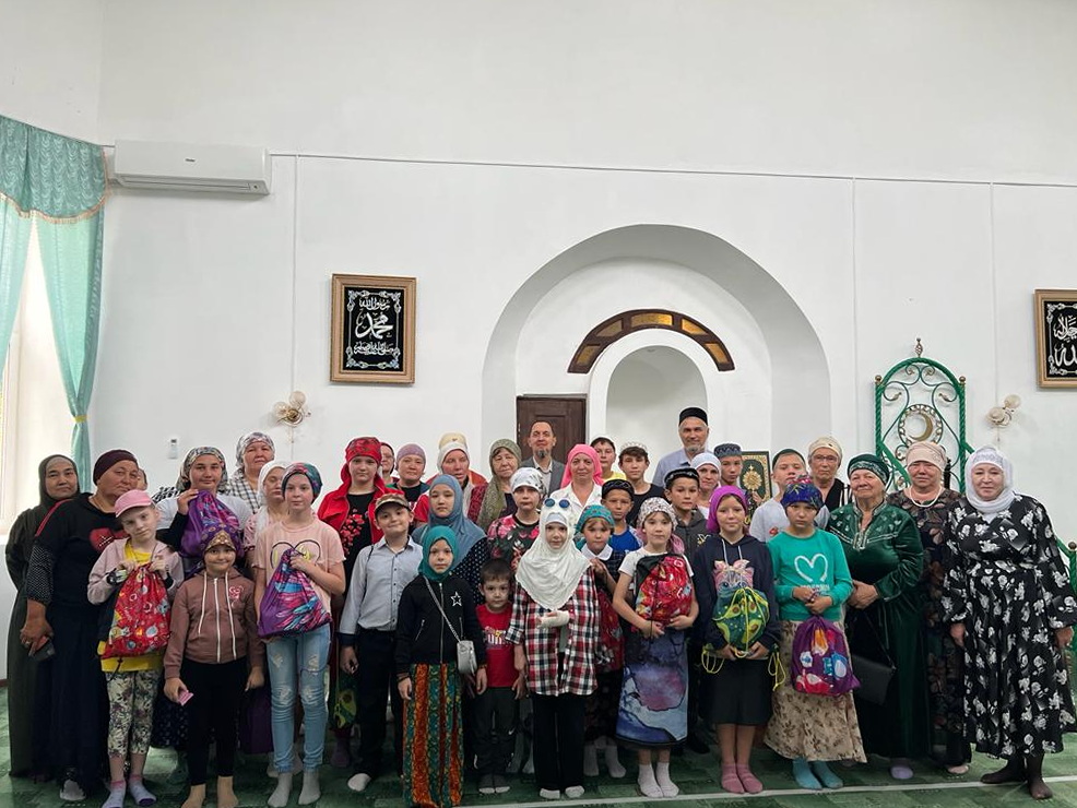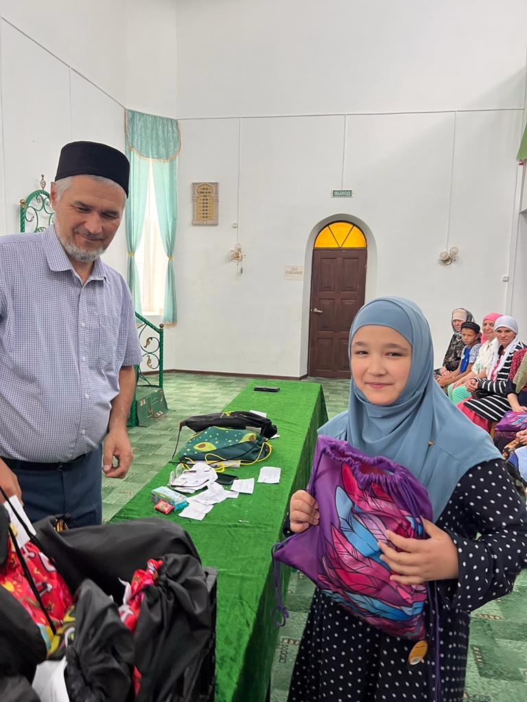В торжественной обстановке имам-хатыб Соборной мечети поселка Дергачи Руслан-хазрат Халиков и руководитель женской группы «Исламия» Гульсем Фахретдинова вручили детям наборы с школьными принадлежностями и пожелали им успехов в учебе.