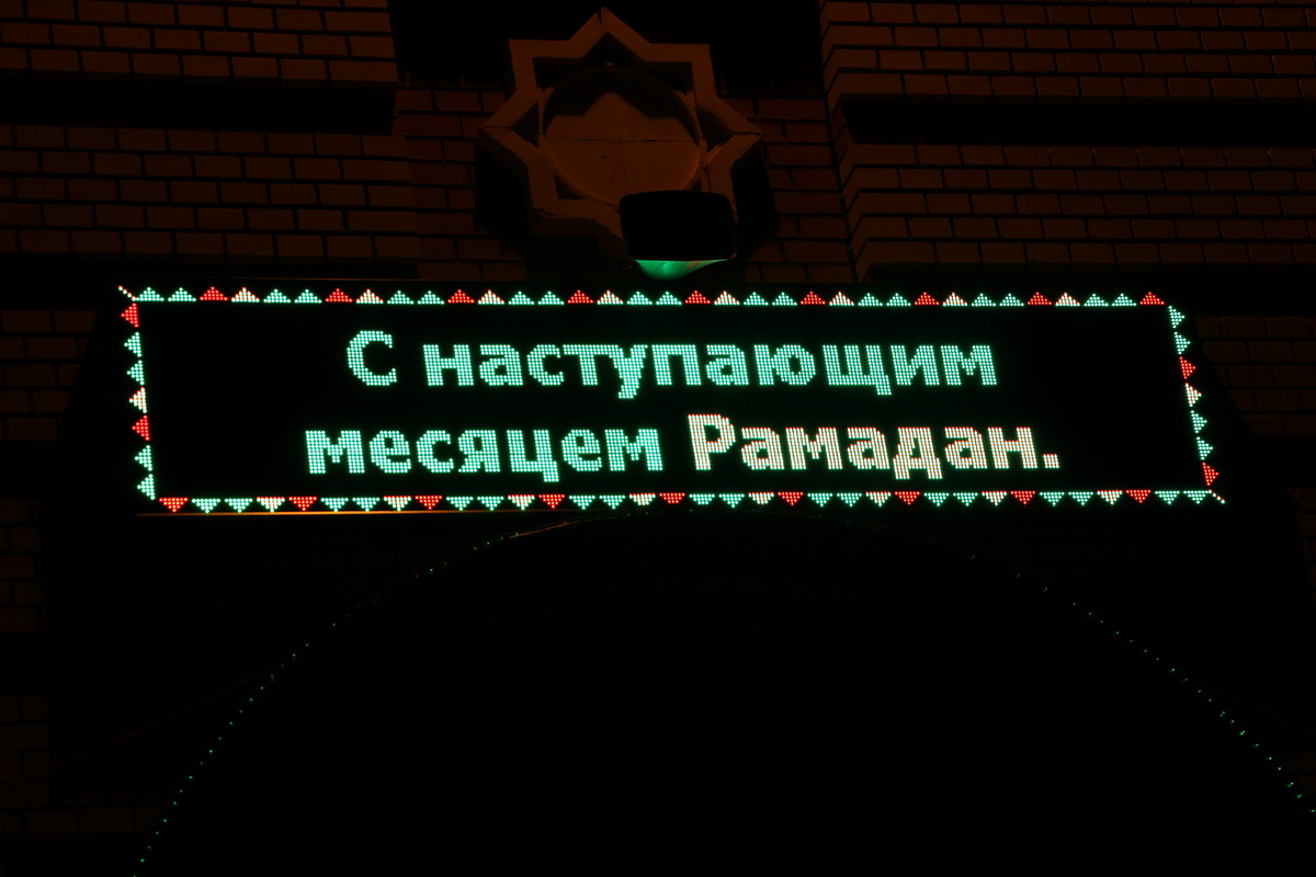 К началу Рамадана в Саратове подготовились заранее. Специально к Благословенному месяцу по периметру Исламского комплекса установили световую иллюминацию, на фасаде здания появилось электронное табло, на котором в темное время суток отображаются аяты Корана и изречения пророка Мухаммада (мир ему). Внутри мечети появились красочные баннеры и цветы.