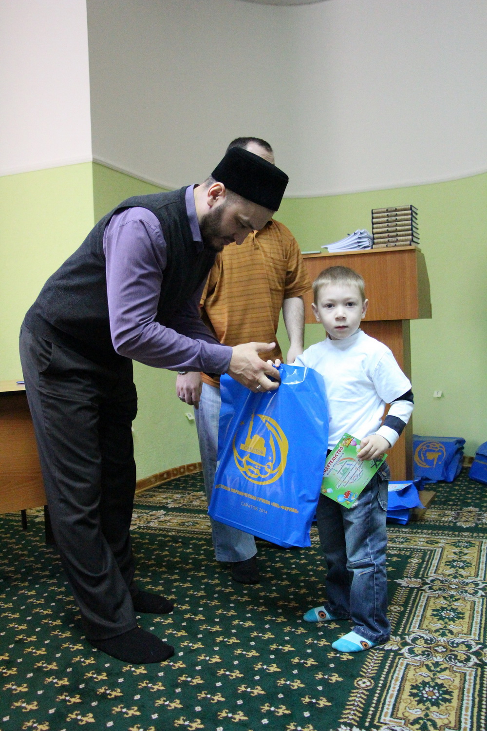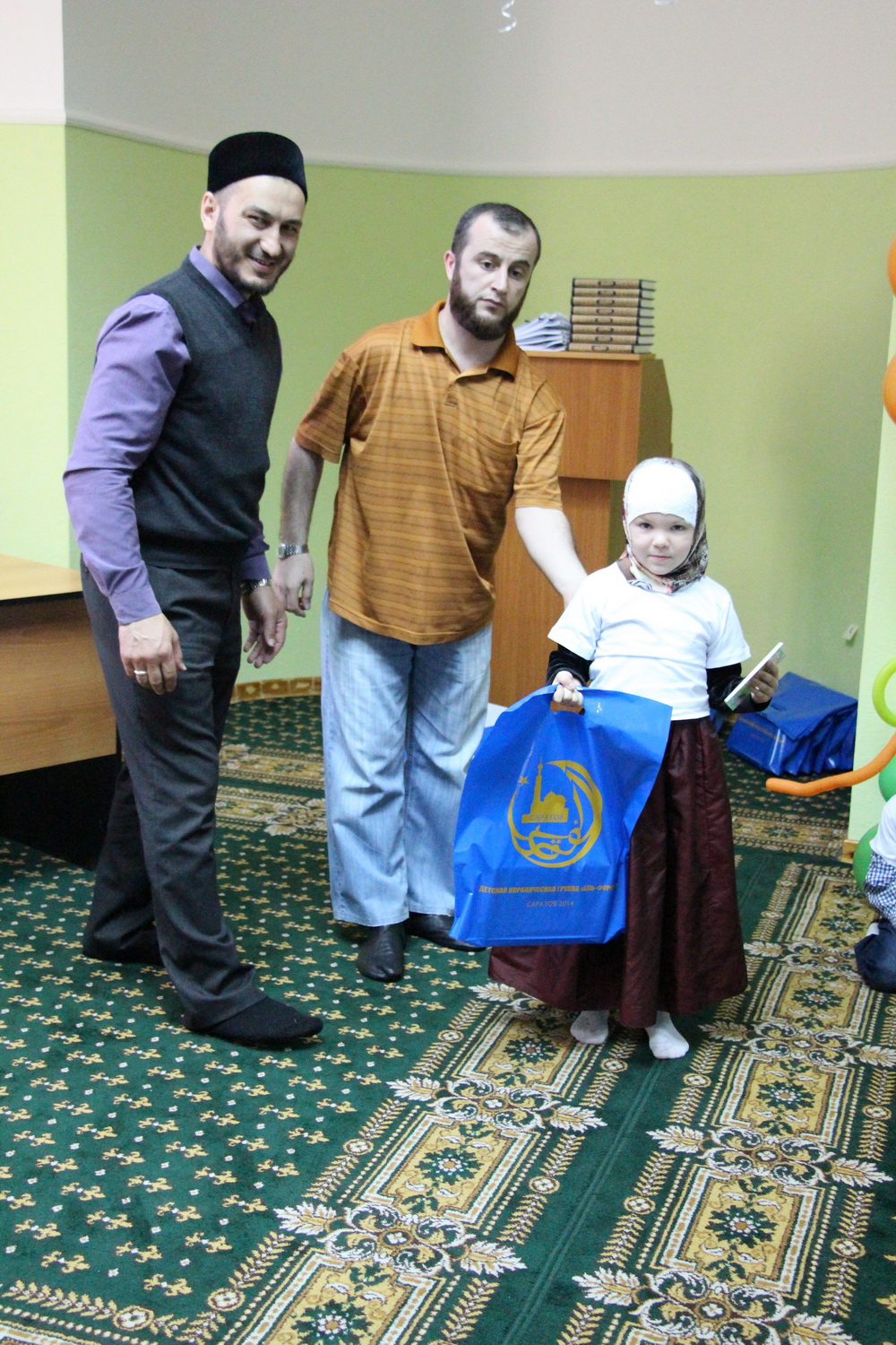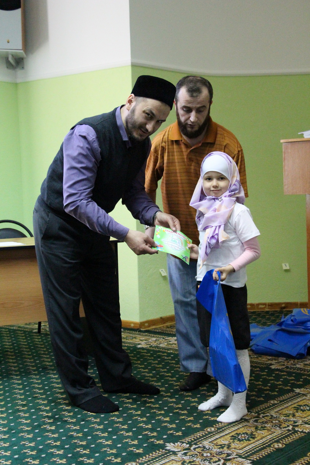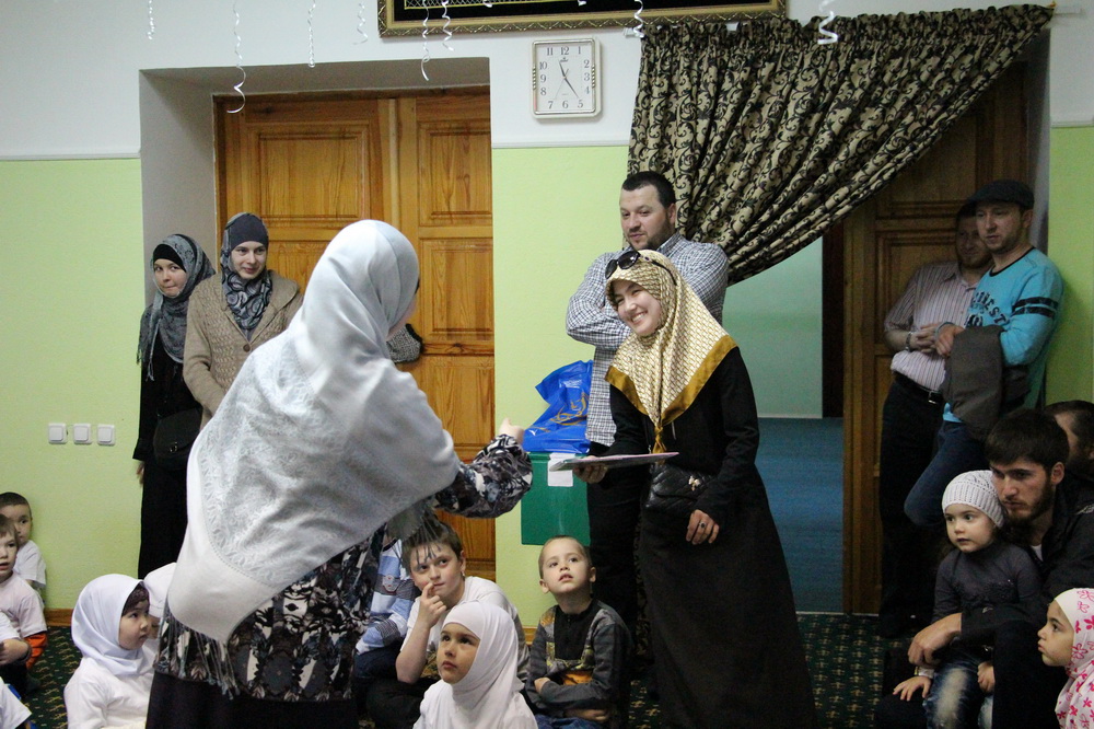 В перерыве для родителей была проведена познавательная викторина. Правильно ответившие на вопросы («При чтении каких сур 30-го Джуза совершается земной поклон», «Чтение какой суры в пятницу является Сунной» и т.д.) были награждены говорящей кружкой, подставкой для Корана и другими памятными подарками.