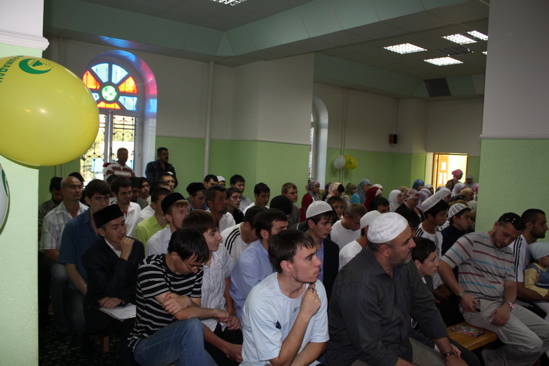 В целом атмосфера, царившая в эти несколько часов в мечети, была наполнена духом праздника. Это отметили и гости, пришедшие в мечеть впервые. Организаторы постарались создать уютную атмосферу, украсив помещение букетами роз, на стенах висели воздушные шары.