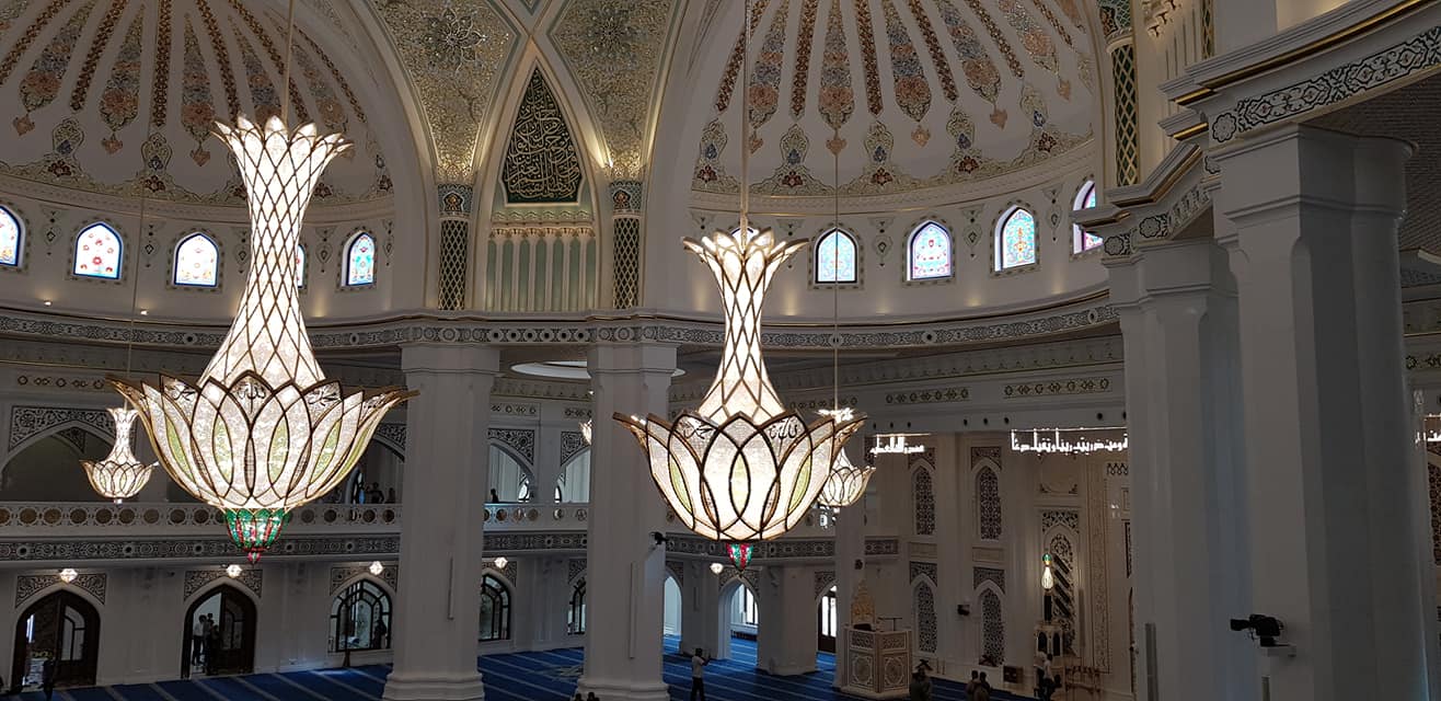 Строительство здания началось в конце 2012 года. Комплекс занимает территорию в пять гектаров, рядом с ним построили парк с 12 фонтанами. Высота основного купола — 41 метр, высота каждого из четырех минаретов — 63 метра.