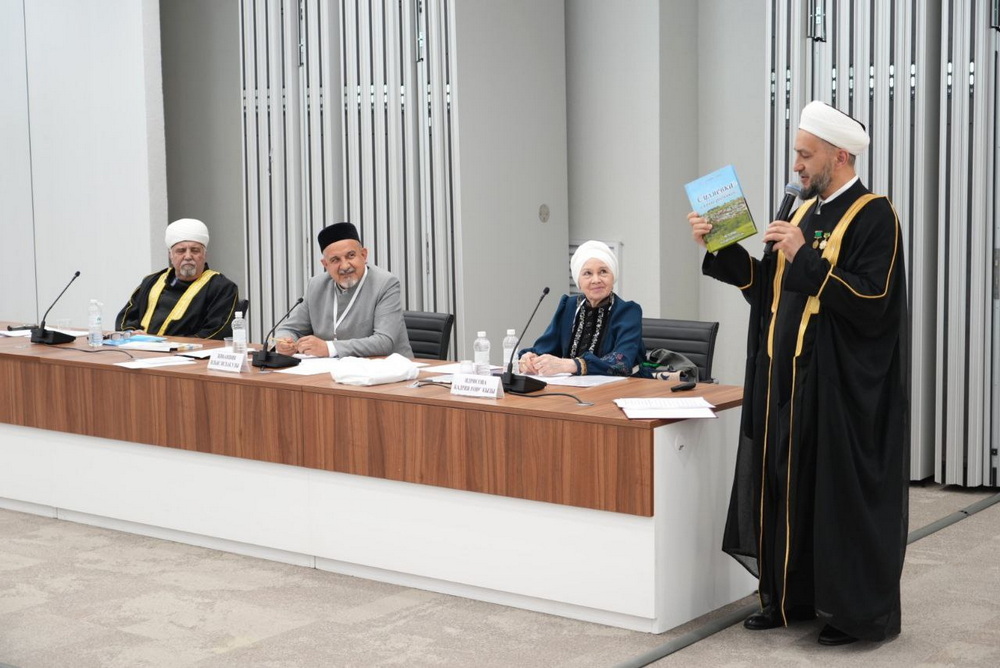На одной из таких площадок Расим-хазрат Кузяхметов выступил с докладом, в котором рассказал о жизни татарского населения в Саратовской области, а также о духовно-просветительской деятельности ДУМСО в нашем регионе. Муфтий отметил, что в губернии ведется активная работа по изданию книг о татарских деревнях. Одну из них — о селе Суляевка — в качестве подарка вручил модераторам мероприятия: ректору Казанского высшего мусульманского медресе имени 1000-летия принятия Ислама Ильясу-хазрату Джиханшину и председателю региональной общественной организации татарских женщин «Ак калфак» Кадрие Идрисовой.