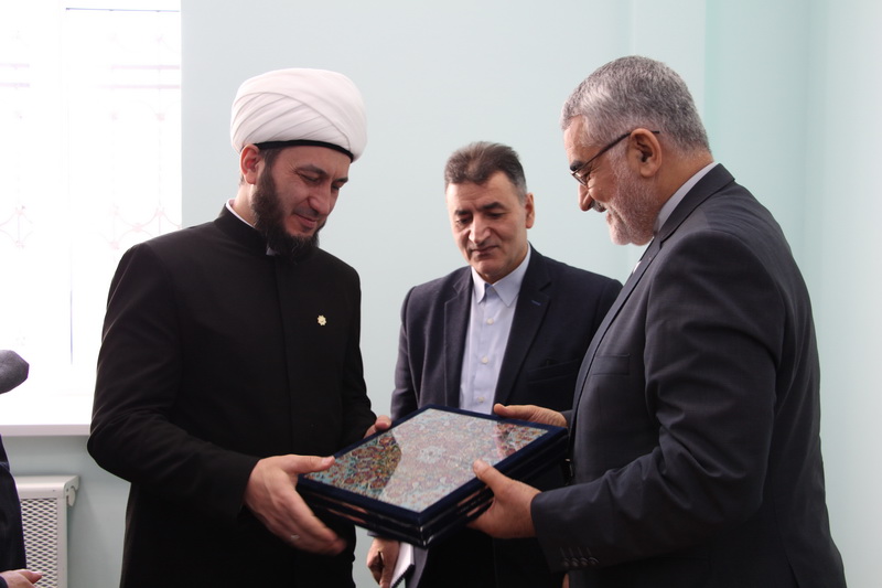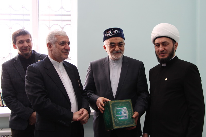 Поблагодарив делегацию из Ирана за визит в Исламский комплекс, первый заместитель муфтия губернии Расим-хазрат Кузяхметов подарил Алаэддину Боруджерди национальную тюбетейку.