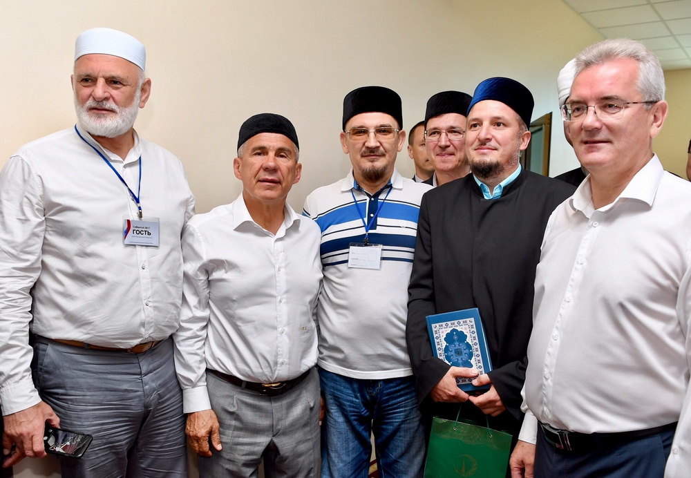 До начала Сабантуя руководители двух поволжских субъектов открыли новую школу и посетили Соборную мечеть, которую возвели в Средней Елюзани в 2015 году. На сегодняшний день в татарском селе с населением десять тысяч человек функционируют 11 мусульманских храмов. Гости осмотрели убранство мечети и встретились с пензенским муфтием Ислямом-хазратом Дашкиным, имамом-мухтасибом Городищегского района Рифатом-хазратом Абузяровым, а также религиозными деятелями Мордовии, Башкортостана, Северной Осетии, Ульяновской и Саратовской областей. На память о своем визите Рустам Минниханов подарил экземпляр Священного Корана, напечатанного в Казани.