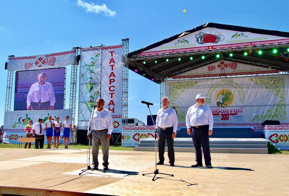 В свою очередь Рустам Минниханов признался, что сбылась его давняя мечта – он много раз слышал про самое большое татарское село России, но побывать в нем смог лишь в минувшую субботу. «Сегодня мы и школу открыли, и мечеть посетили, и вместе с вами находимся на площадке Сабантуя», — отметил глава Татарстана. Он подчеркнул, что Сабантуй уже давно стал праздником не только татар, он проводится в 59 регионах РФ и 32 странах мира.