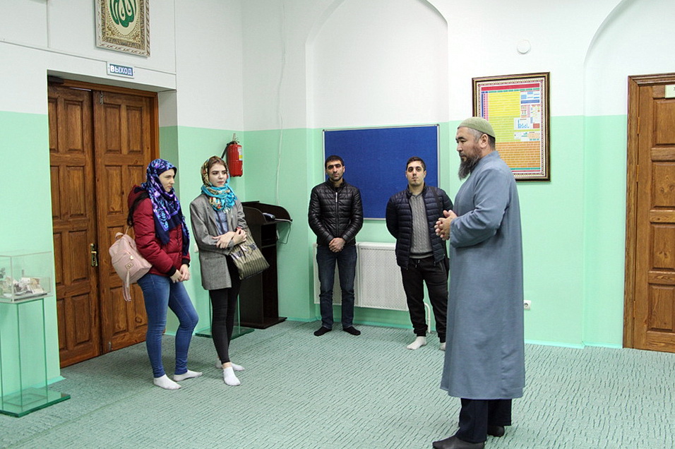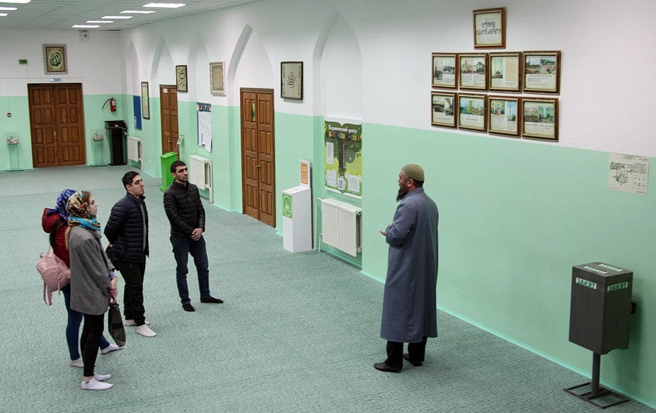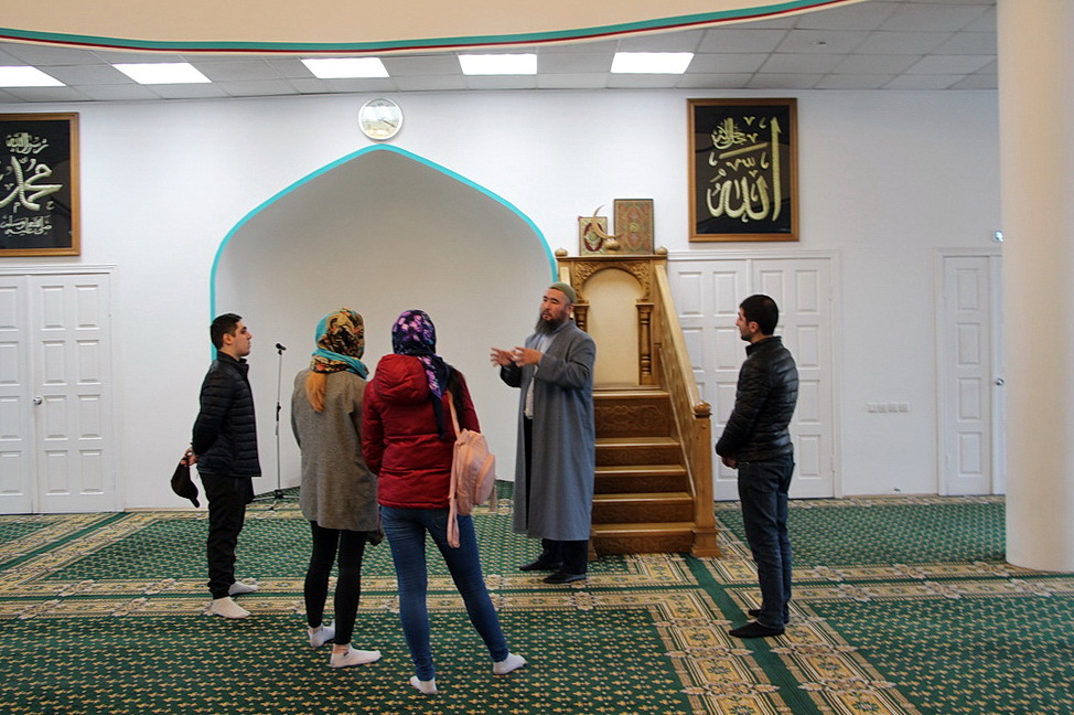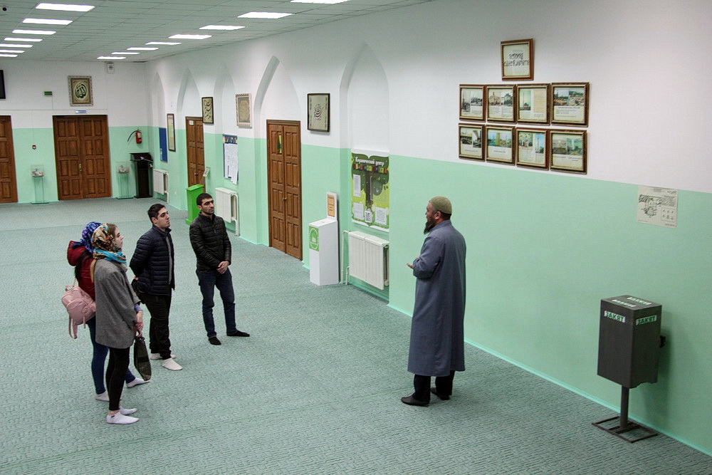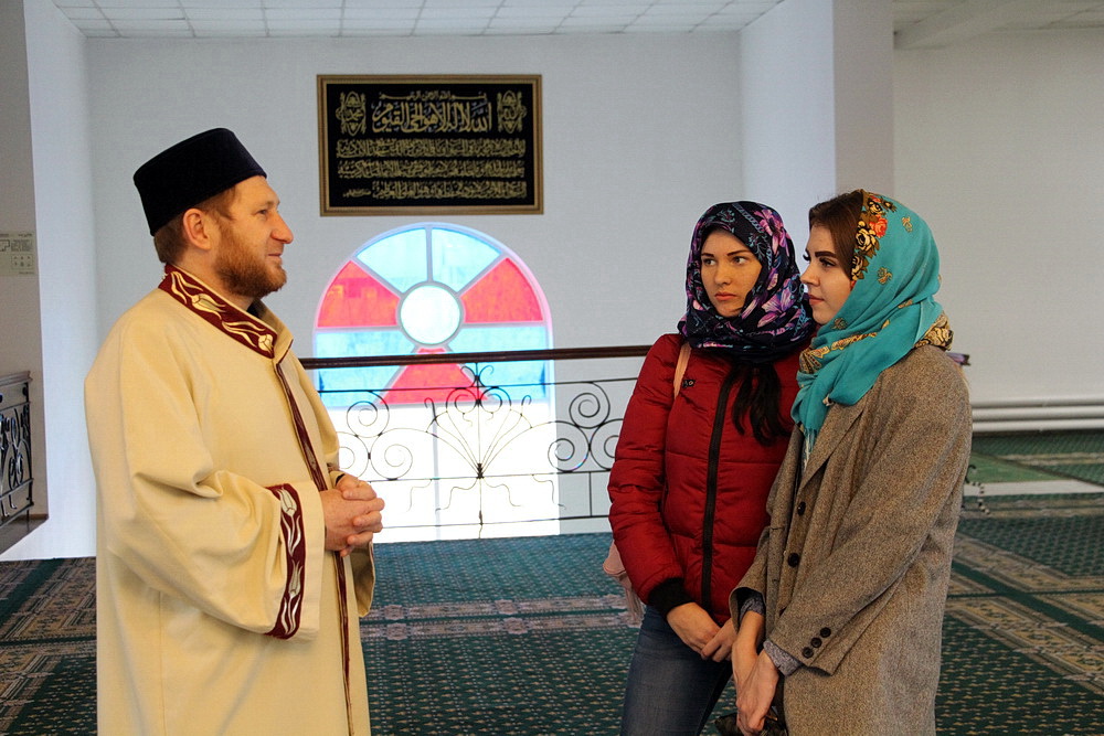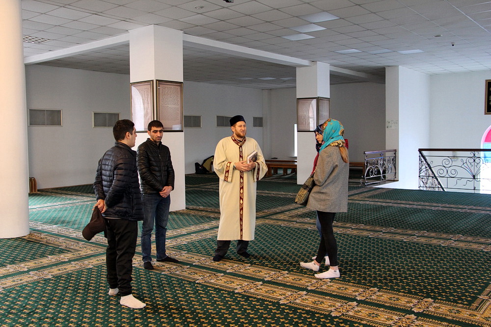 Участники Дня открытых дверей впервые побывали в мечети. Здесь их познакомили с основами Ислама, показали внутреннее убранство мусульманского храма, рассказали о Священном Коране и продемонстрировали его экземпляры.