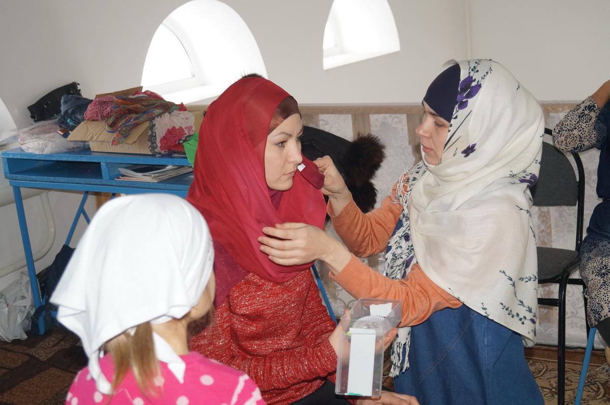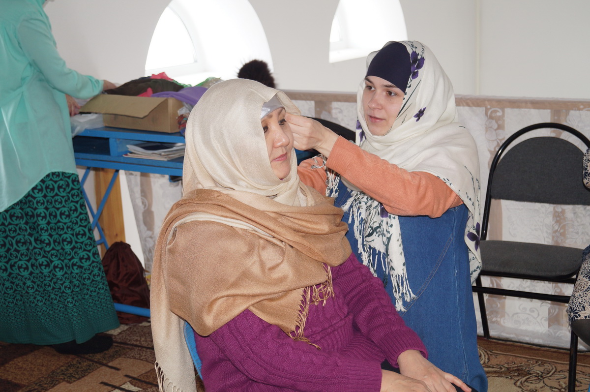 В мастер-классе смогли поучаствовать гости, активистки подбирали платок и способ повязывания каждой женщине или девочке исходя из ее типа внешности. В итоге, как рассказала Танзиля, все мусульманки остались довольны и получили от этого дня массу впечатлений и удовольствия.