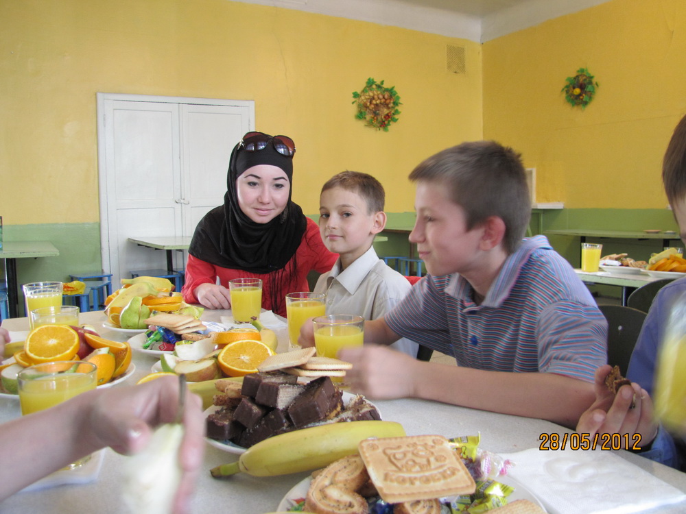 Стоит отметить, что девочки проявили себя хорошими хозяйками, помогая гостьям подавать угощения, и рассказали мусульманкам о своих умениях в приготовлении блюд. Мальчики в свою очередь с удовольствием пообщались на тему спорта, поведав, кто каким видом спорта увлекается.