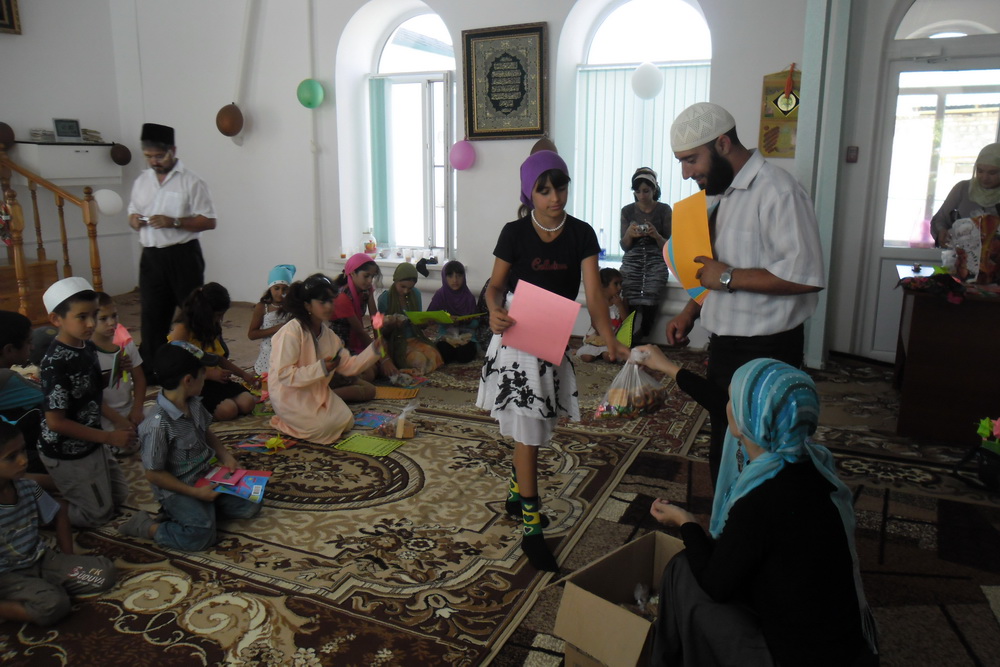 В этот день организаторы устроили для детей настоящий праздник. Сначала запестрела территория перед  мечетью — ребята, вооружившись цветными мелками, создавали яркие рисунки на асфальте. Затем дети стали гостями и самой мечети.