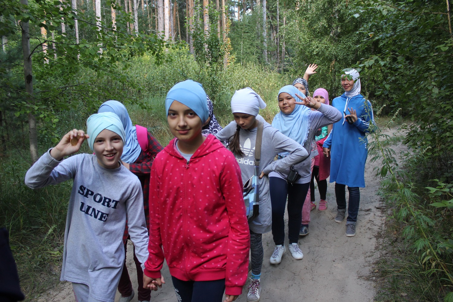 Так, 14 августа, юные мусульманки дружно отправились в поход. Там они насладились красотой лесных пейзажей и с пользой провели время. При этом весь путь сопровождался веселыми речёвками каждого из отрядов.
