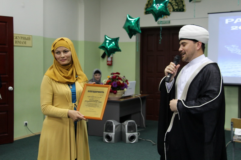 Он вручил почетные грамоты и благодарности Совета муфтиев России коллективу женской мусульманской организации «Родник» Союза мусульманок России и лично руководителю Хадидже Бибарсовой за значительный вклад в реализации социальных и благотворительных проектов.