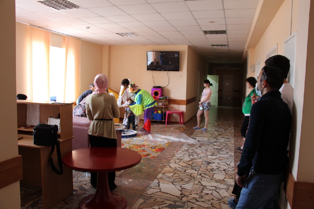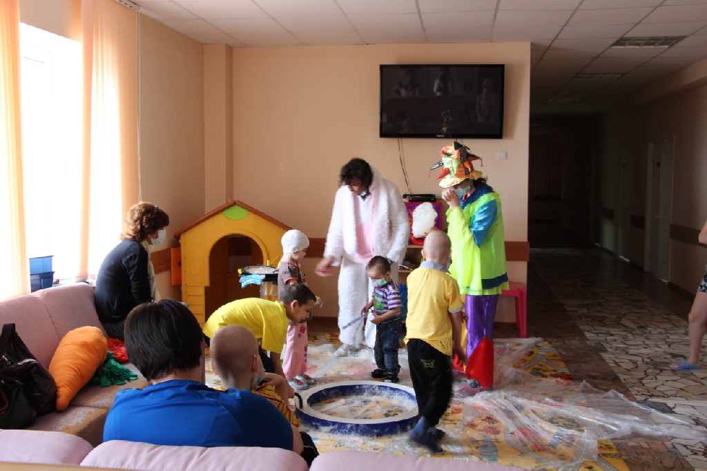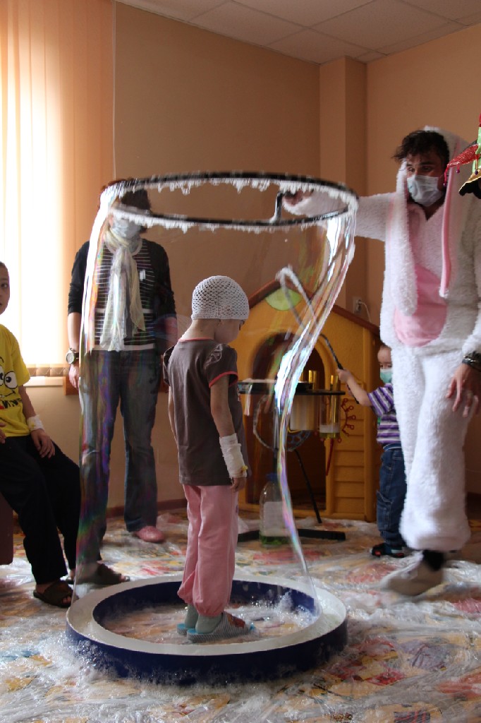 На этот раз дети не были просто наблюдателями, они приняли непосредственное участие в представлении и попробовали себя в роли фокусников. Вместе со своими маленькими соседями по палате Салима с удовольствием играла в мыльные пузыри. Таким гостям были рады все.