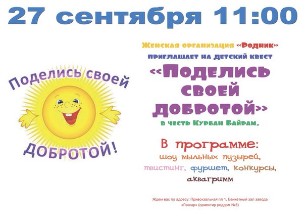 27 сентября в Саратове в честь Курбан-Байрама для юных мусульман пройдет детский праздник «Поделись своей добротой».