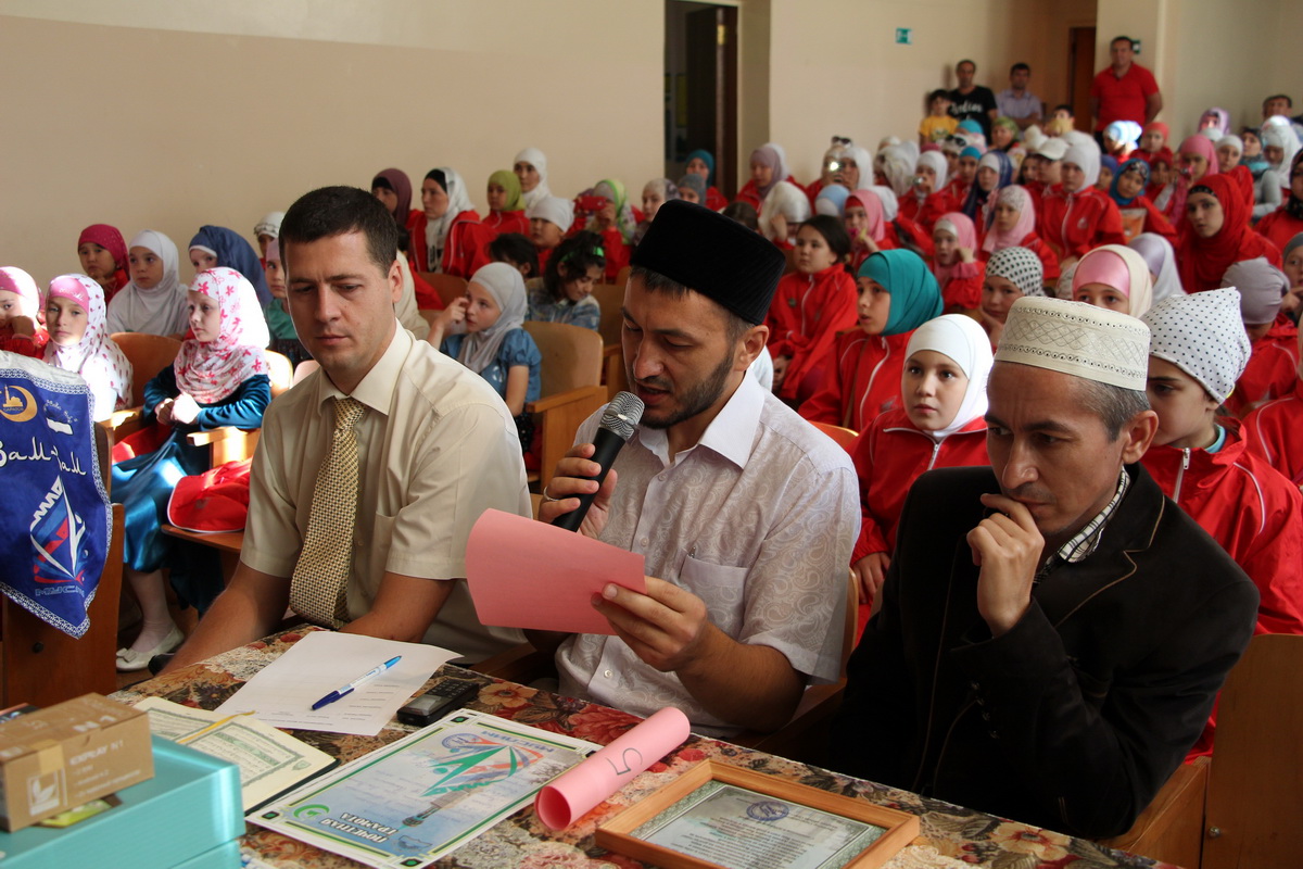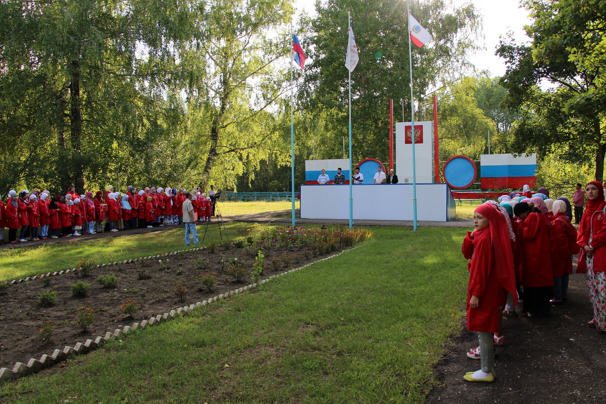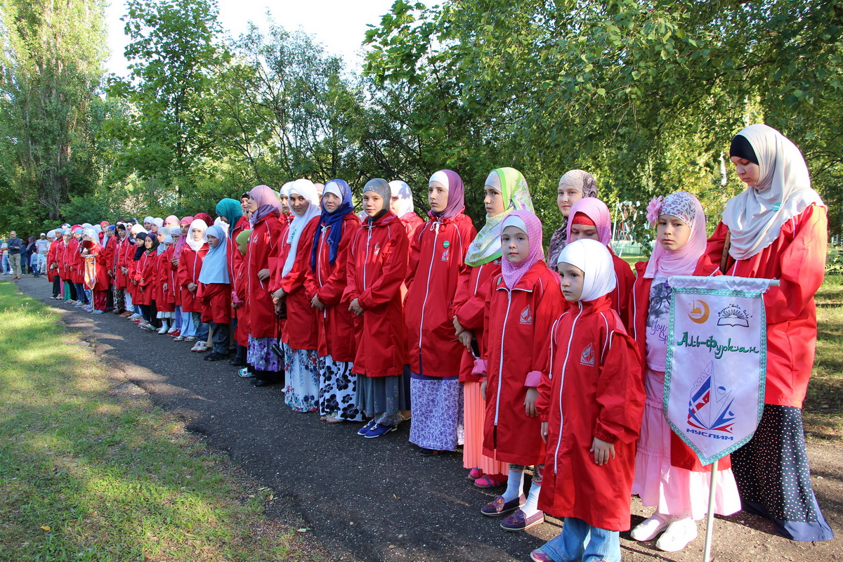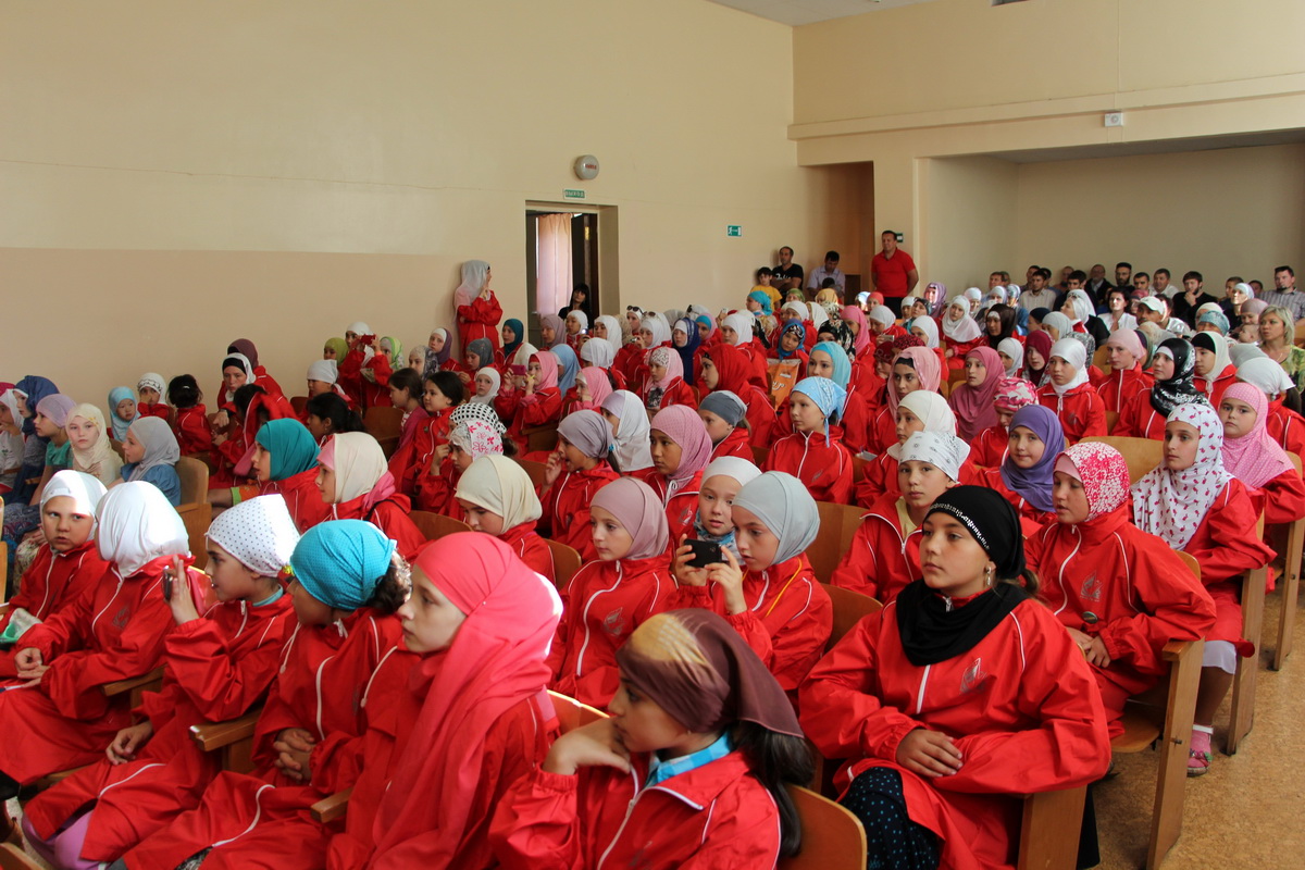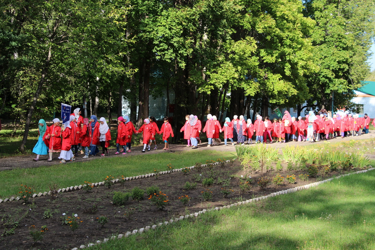 В последний раз в этом году все отряды идут строем к главной площади лагеря для участия в торжественной линейке. Одинаково одетые в легкие красные курточки-ветровки с логотипом «Муслима» (подарок детям и вожатым смены) девочки заняли свои места и с волнением ждут начала мероприятия. Вначале с трибуны прозвучали аяты Священного Корана, затем к юным мусульманкам, их родителям и гостям обратился директор Всероссийской смены Расим-хазрат Кузяхметов. Он поздравил всех с завершением мусульманского лагеря, пожелав воспитанницам хорошо учиться в школе, получать полезные знания и вновь встретиться вместе в следующем году. Кроме этого, директор смены зачитал поздравление председателя Совета муфтиев России Равиля-хазрата Гайнутдина.