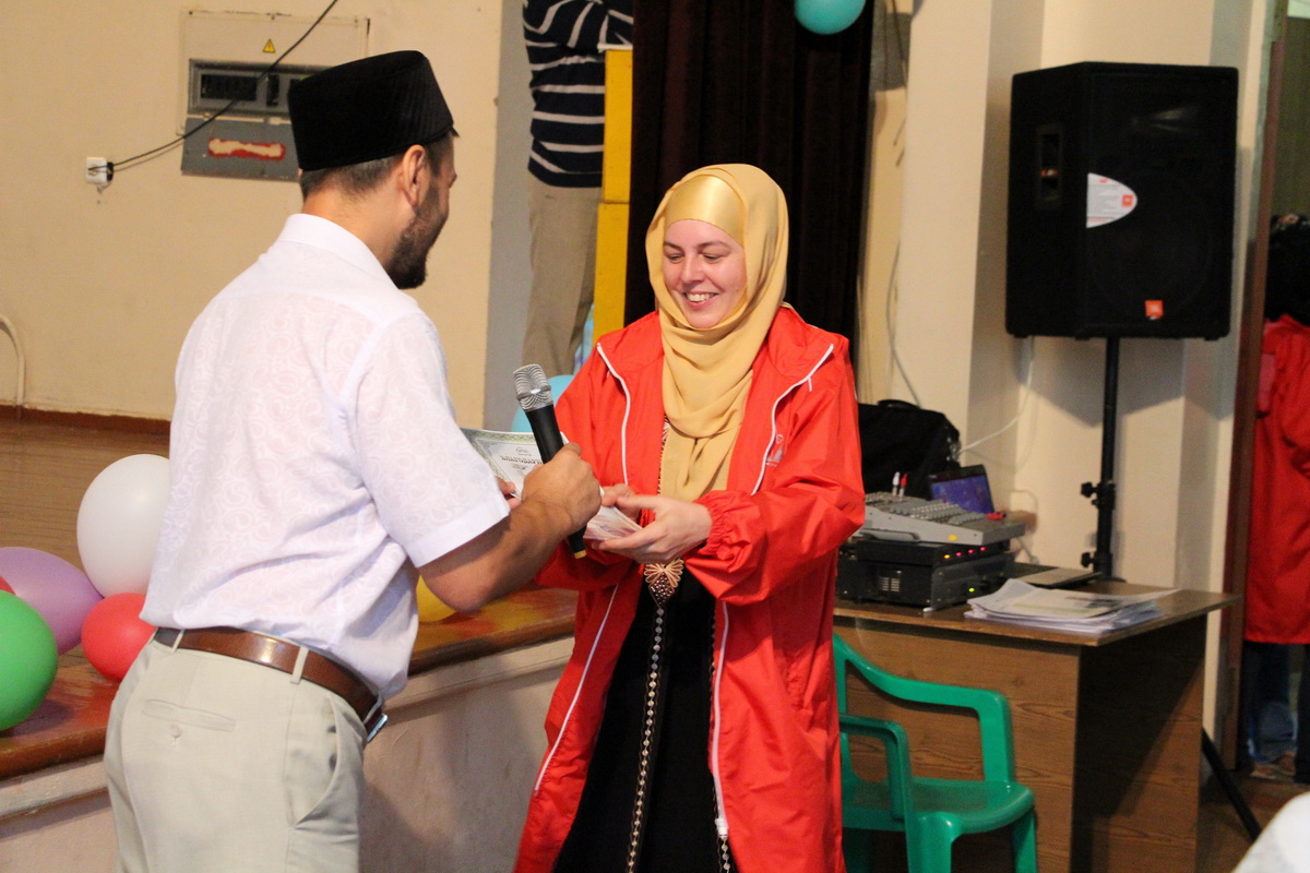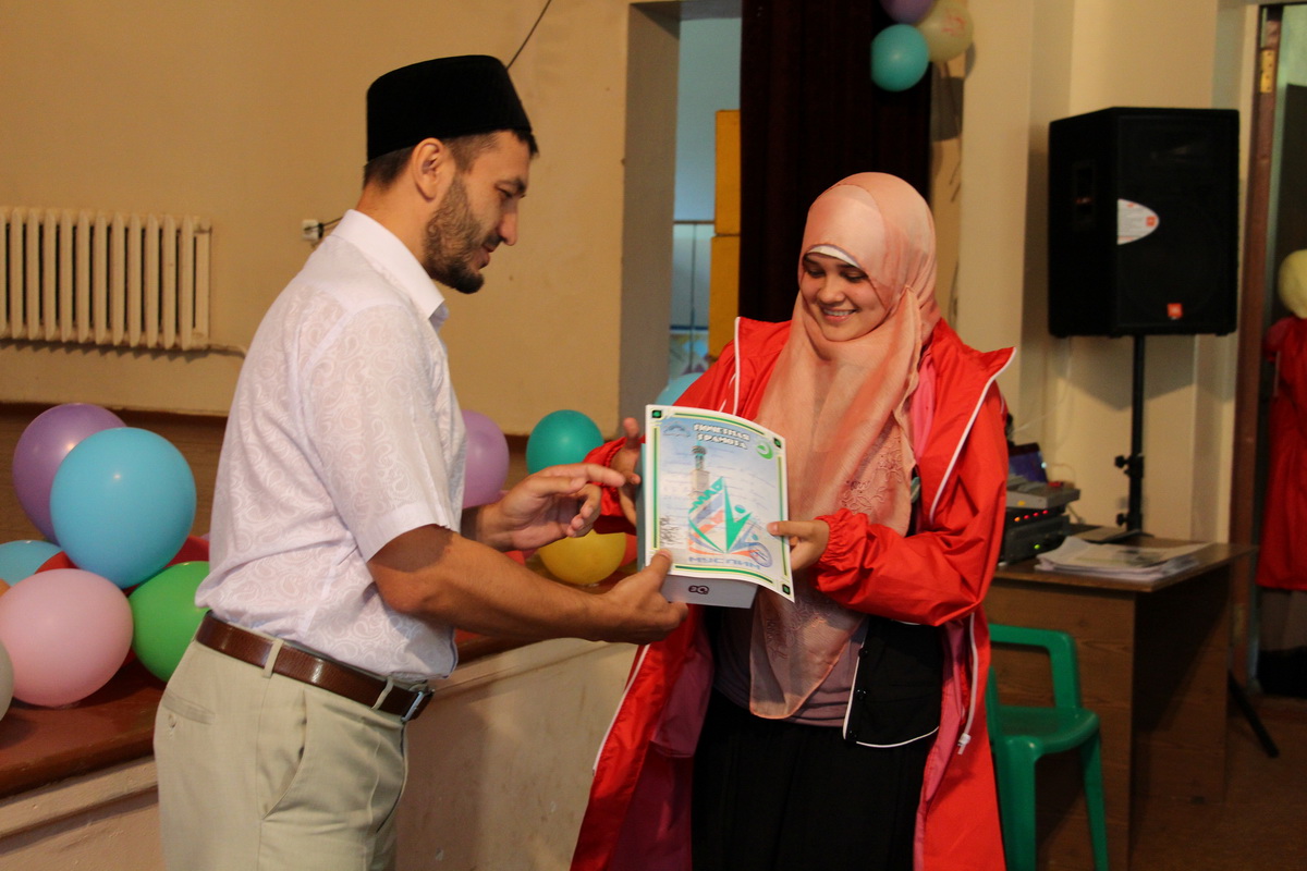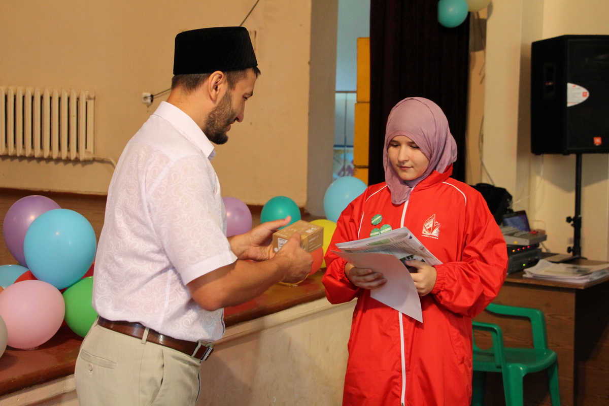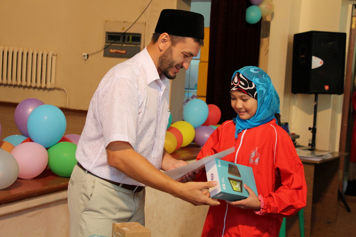 Перед тем, как объявить имена победителей, директор Всероссийской смены вручил ценные подарки девочкам, которые за три недели выучили «Аль-Фатиху» и три последние суры и стали победителя лагерного конкурса. По решению жюри, третье место в кораническом конкурсе на знание почти половины 30 Джуза заняла Халима Рамазанова. Ей подарили мобильный телефон. «Серебро» и планшетный компьютер достались Райхане Куряевой. Победу праздновала Юлия Гатауллова, которой также вручили современный девайс.