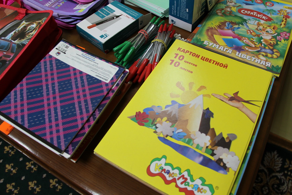 В один такой набор входят тетради, альбомы, карандаши, ручки, цветная бумага, картон, папка и др. «Все эти необходимые канцелярские принадлежности закупили и привезли нам неравнодушные люди. Мы сформировали комплекты и передали их многодетным нуждающимся семьям. В некоторых семьях, например, в школу ходят 5-6 детей», — отметила Хадиджа Бибарсова.