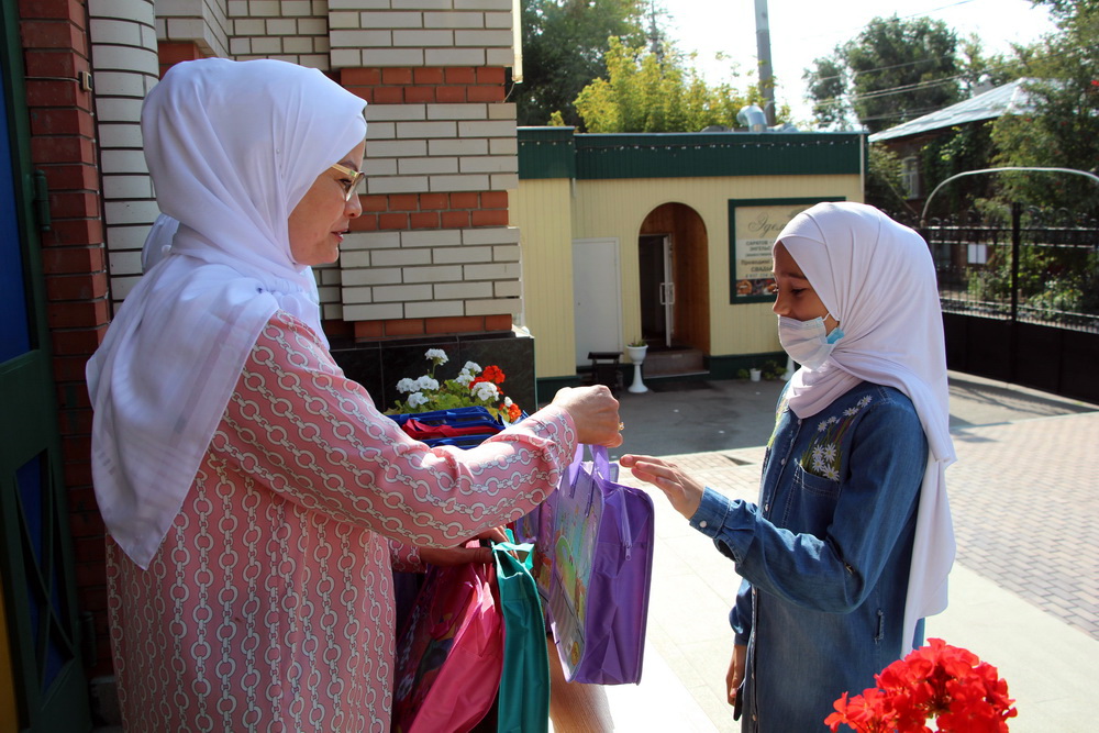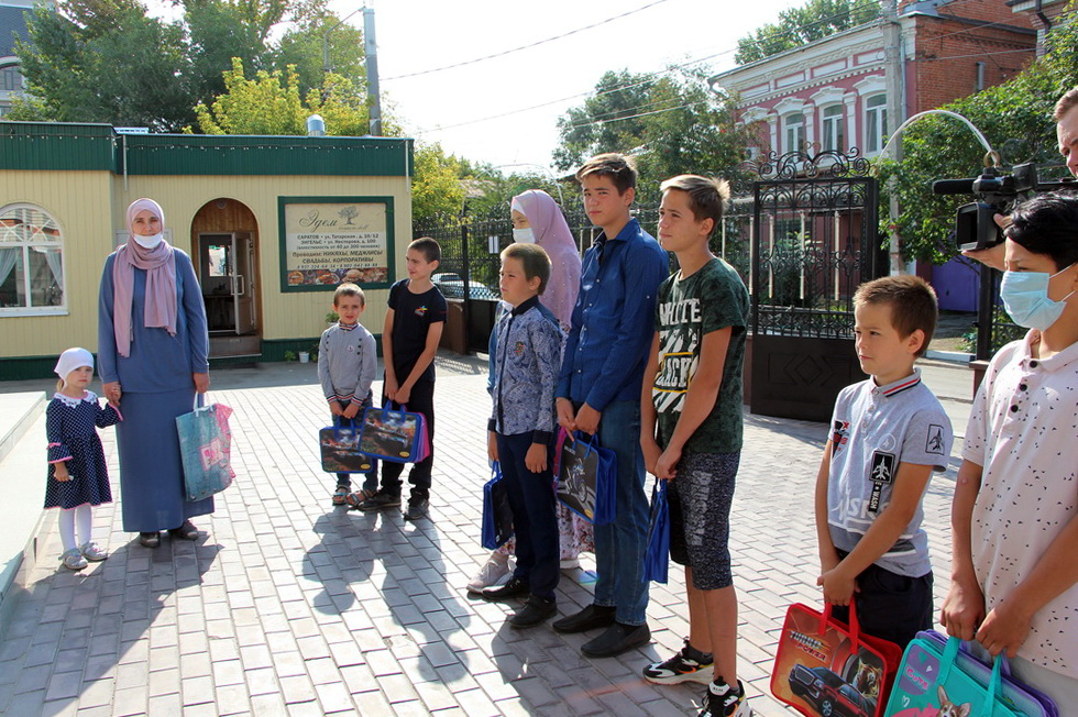 Утром в пятницу во двор Исламского комплекса г.Саратова пригласили мальчиков и девочек из многодетных семей. Общественный помощник регионального уполномоченного по правам ребенка Хадиджа Бибарсова и имам Саратовской соборной мечети Рустам-хазрат Мухитов, присоединившиеся к благотворительной кампании, вручили школьникам 14 комплектов.