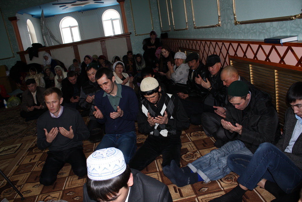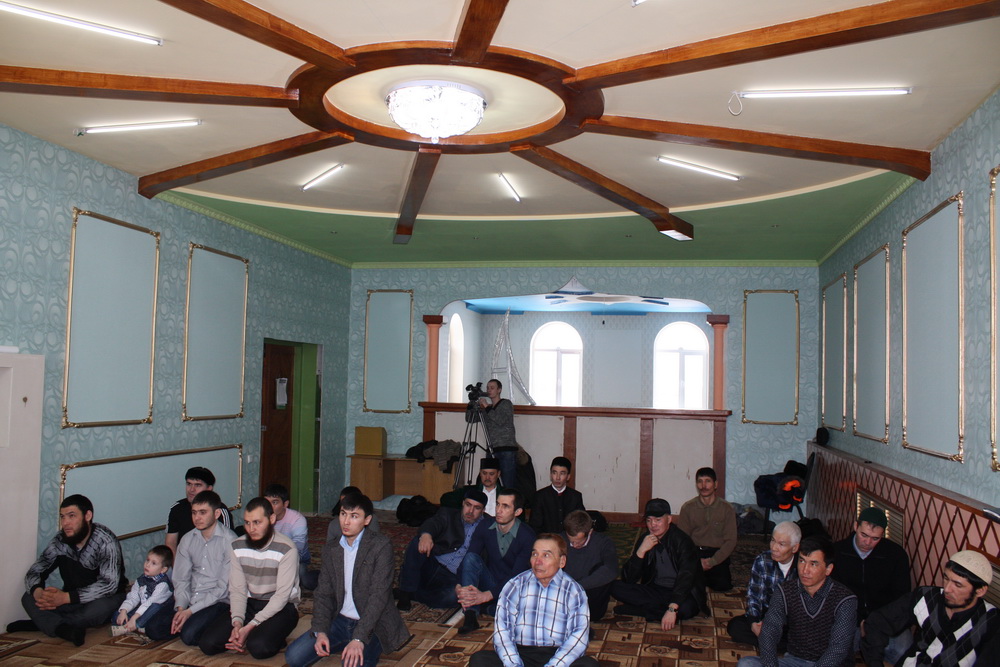 Нужно сказать, что общение проходило в стенах мечети, которая переживает свое второе «рождение» — в настоящее время полным ходом идет реконструкция исламского культового сооружения. Изюминкой отреставрированной мечети станет её внутреннее убранство, которое выдержано в национальном казахском стиле и напоминает юрту.