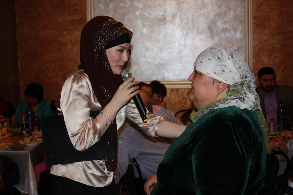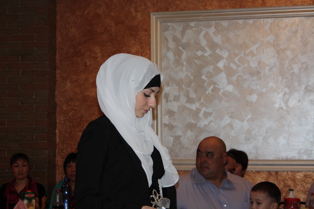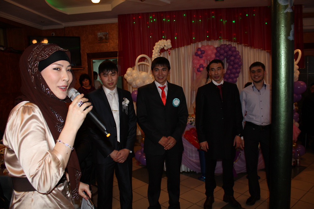 Приятным сюрпризом для молодоженов стал подарок, который «привезли» саратовские мусульмане в Ал-Гай. Молодым и гостям свадьбы была представлена праздничная программа, в которой блистали солистки из группы «Нур», сменяемые репризами и конкурсами в исполнении ведущей Айжан Садыковой.