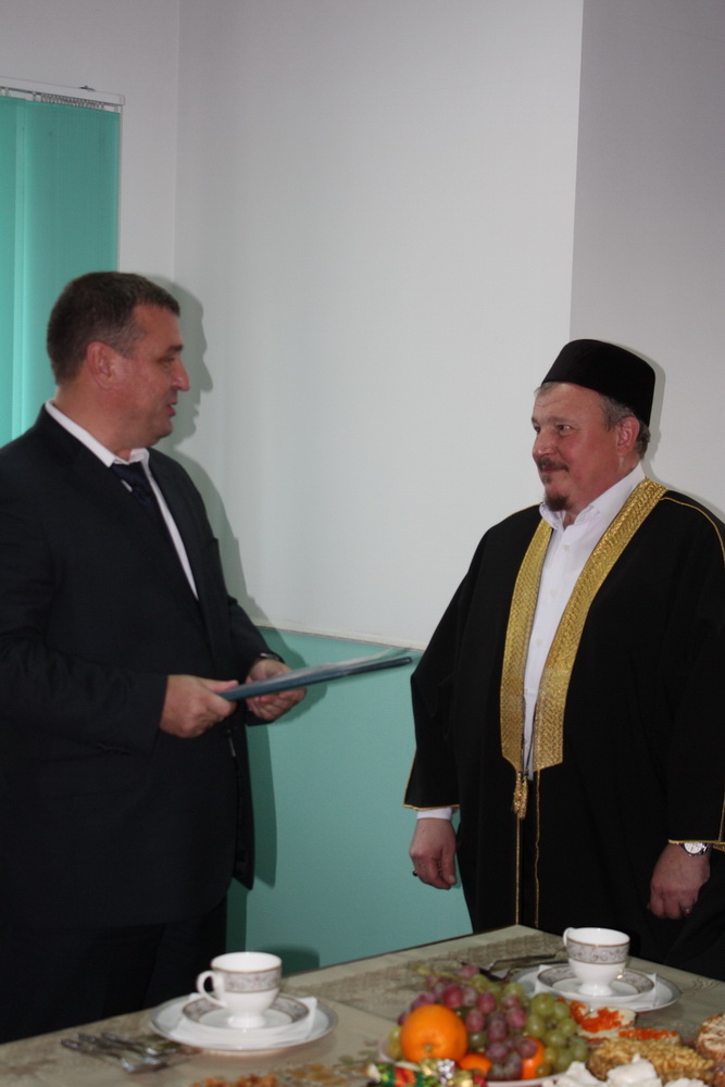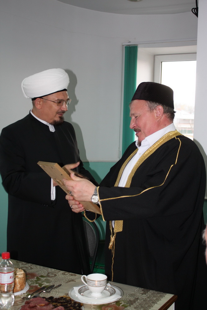 Пожелав энгельсскому имаму крепкого здоровья и терпенья, муфтий региона вручил Рушану-хазрату благодарственное письмо и памятный подарок.