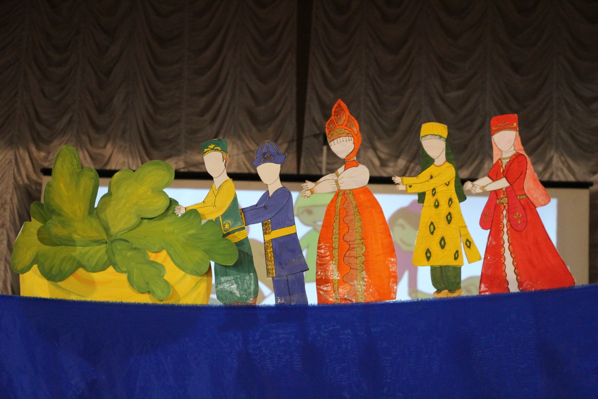 А еще была показана замечательная инсценировка сказки «Репка» в новой интерпретации. В этот раз знаменитый овощ из любимой сказки тянули не дед с бабкой, Жучкой и внучкой, а русский, татарин, казах, кавказец и др.