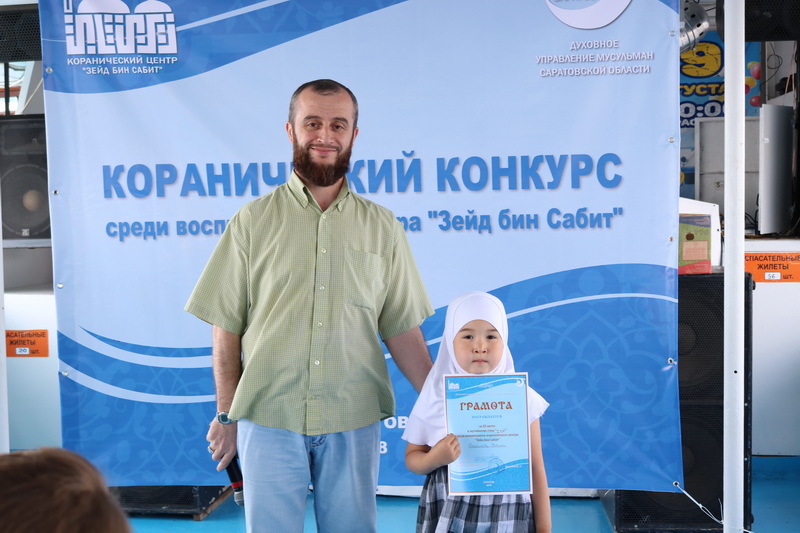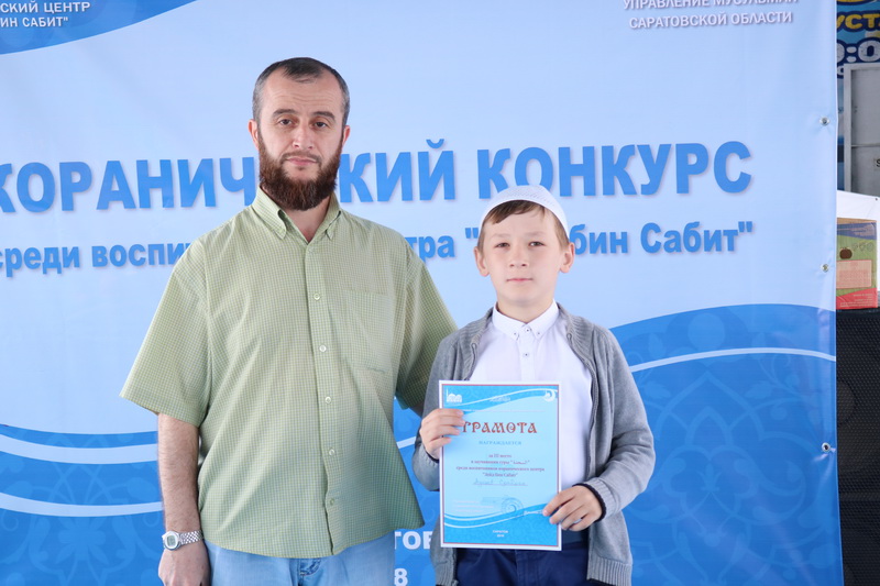 По итогам коранического конкурса первые места в номинации «Чтение наизусть суры «Аль-Бурудж» заняли Хамза Алимирзоев и Айя Волкова, а в категории «Чтение наизусть суры «Ас-Саджда» победителями оказались Шахрулла Фахриев и Асият Магомедова.