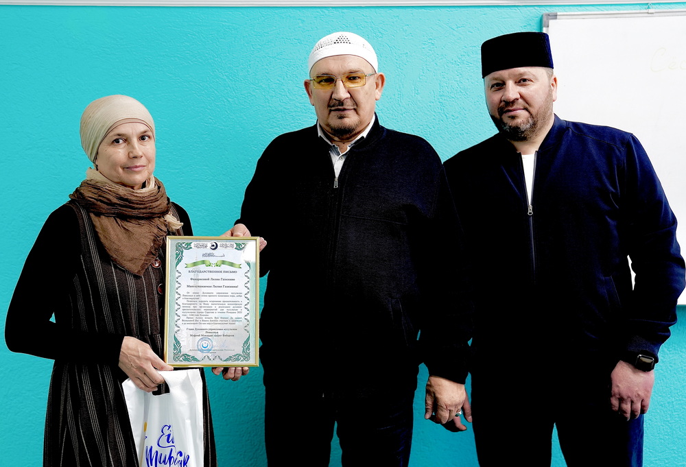 2 апреля 2025 года, в Саратовской Соборной мечети состоялась встреча Мукаддаса-хазрата Бибарсова и председателя мечети Рустама эфенди Шаипова с мусульманками, которые работали волонтерами в течение прошедшего месяца Рамадана.