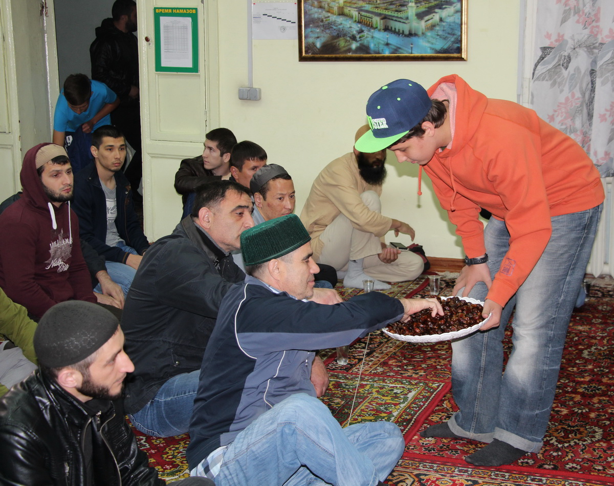 С заходом солнца постящиеся совершают Магриб-намаз, после чего собираются за трапезой. Сидя за одним столом, верующие разных возрастов и национальностей общаются и делятся впечатлениями о завершившемся очередном дне Рамадана.