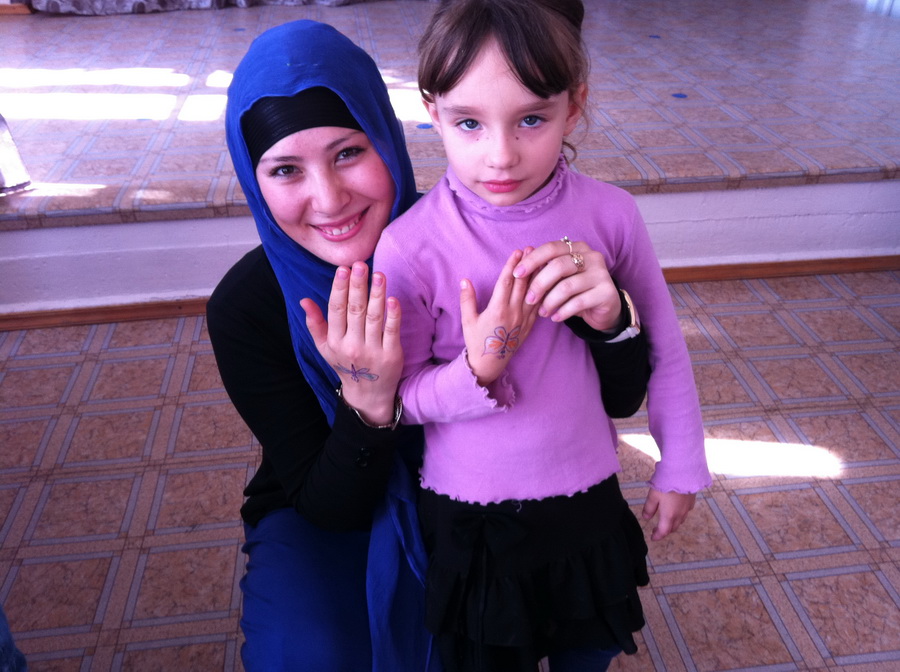 Особую радость у ребят вызвало рисование на руках специальными фломастерами для тела, которое устроили мусульманки.